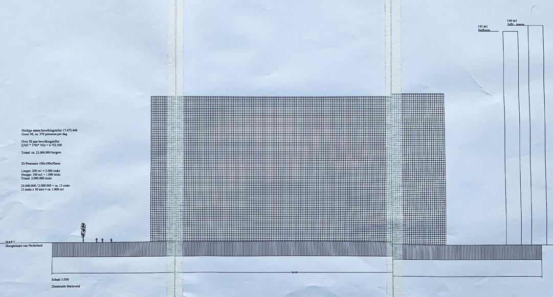Uit dit onderzoek is gebleken dat de verdediging van onze vrijheid en democratie tegen de onzichtbare bedreiging van het algoritme kennis is; de beste verdediging in een vrije wereld. Hierdoor zijn er geen technologische beperkingen nodig en kunnen onze verworven vrijheden behouden blijven. Dit doe ik door ruimte te creëren met architectuur in de onzichtbare wereld van technologie. Op het Malieveld in Den Haag, omringd door een denkbeeldig gebouw dat als een toren van verdediging fungeert. Deze toren staat op de as van de straat die naar het parlement van onze democratie leidt. Aan deze verdedigingstoren hangt een wolk, die ik de “cloud” heb genoemd. Deze wolk opent zich naar het politieke hart en bevat onze identiteit. In het midden van de wolk drijft een grote omgekeerde koepel, die ik het “interne geheugen” noem. Het is ontworpen als een groot plein waar gebruikers samenkomen om kennis met elkaar te delen. Het gebouw, dat ook wel als een machine kan worden beschouwd, hangt in