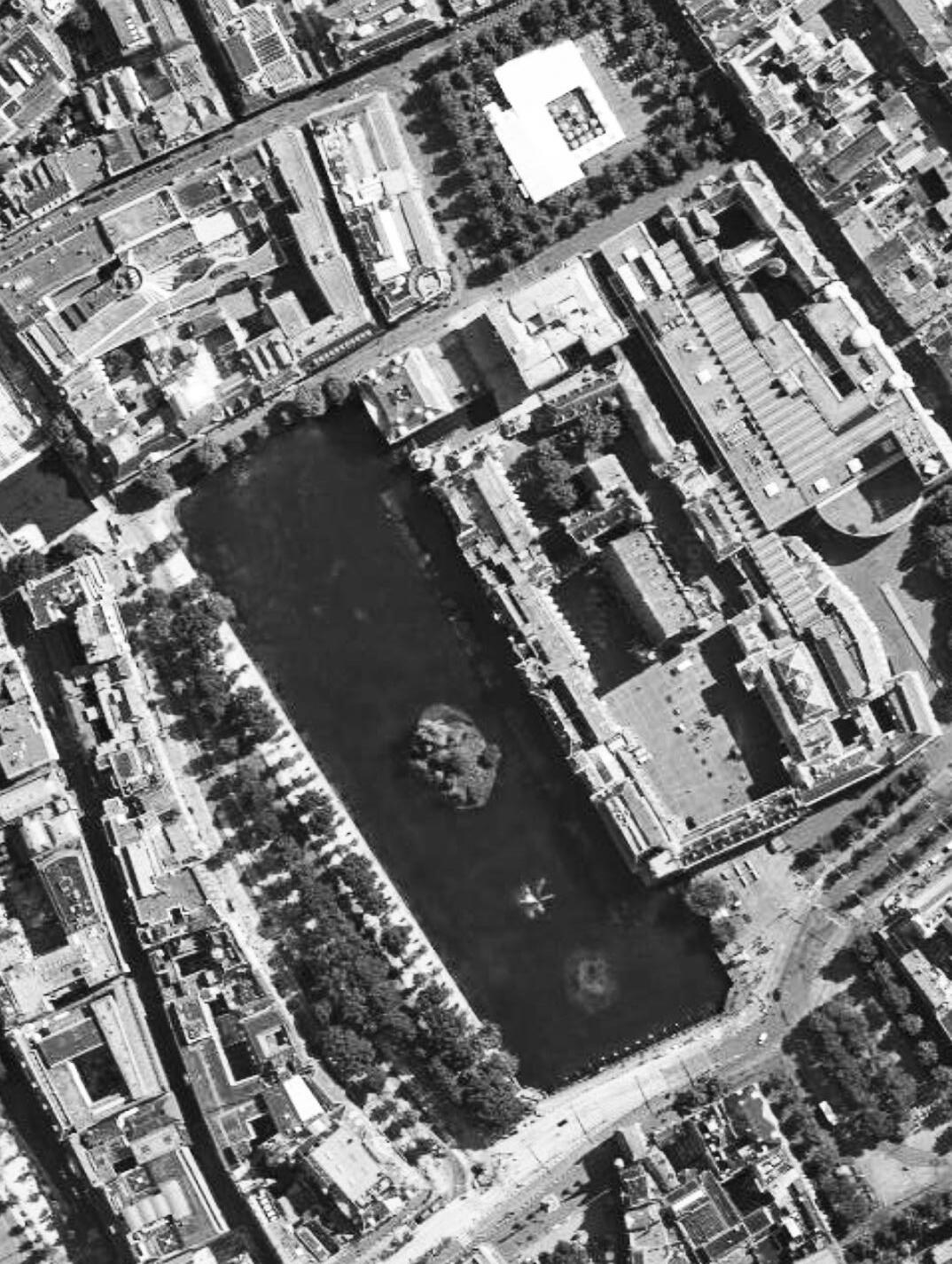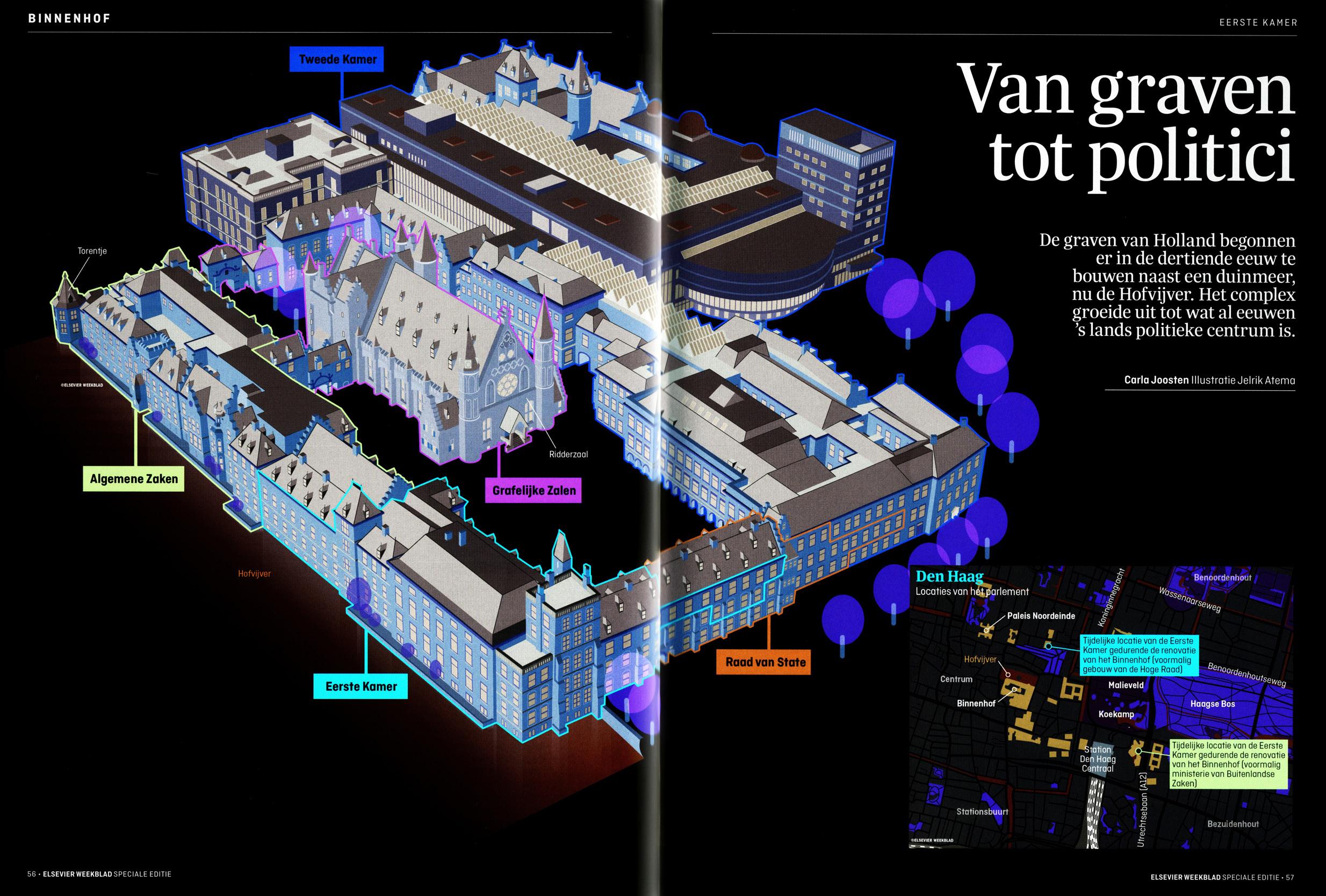 33.DE CONTOUREN ZIJN DE GEBOUWEN VAN HET BINNENHOF EN TWEEDE KAMER, MAAR OOK DE DAARBIJ BEHORENDE MINISTERIES.[Plug-in Mainboard P. 111]