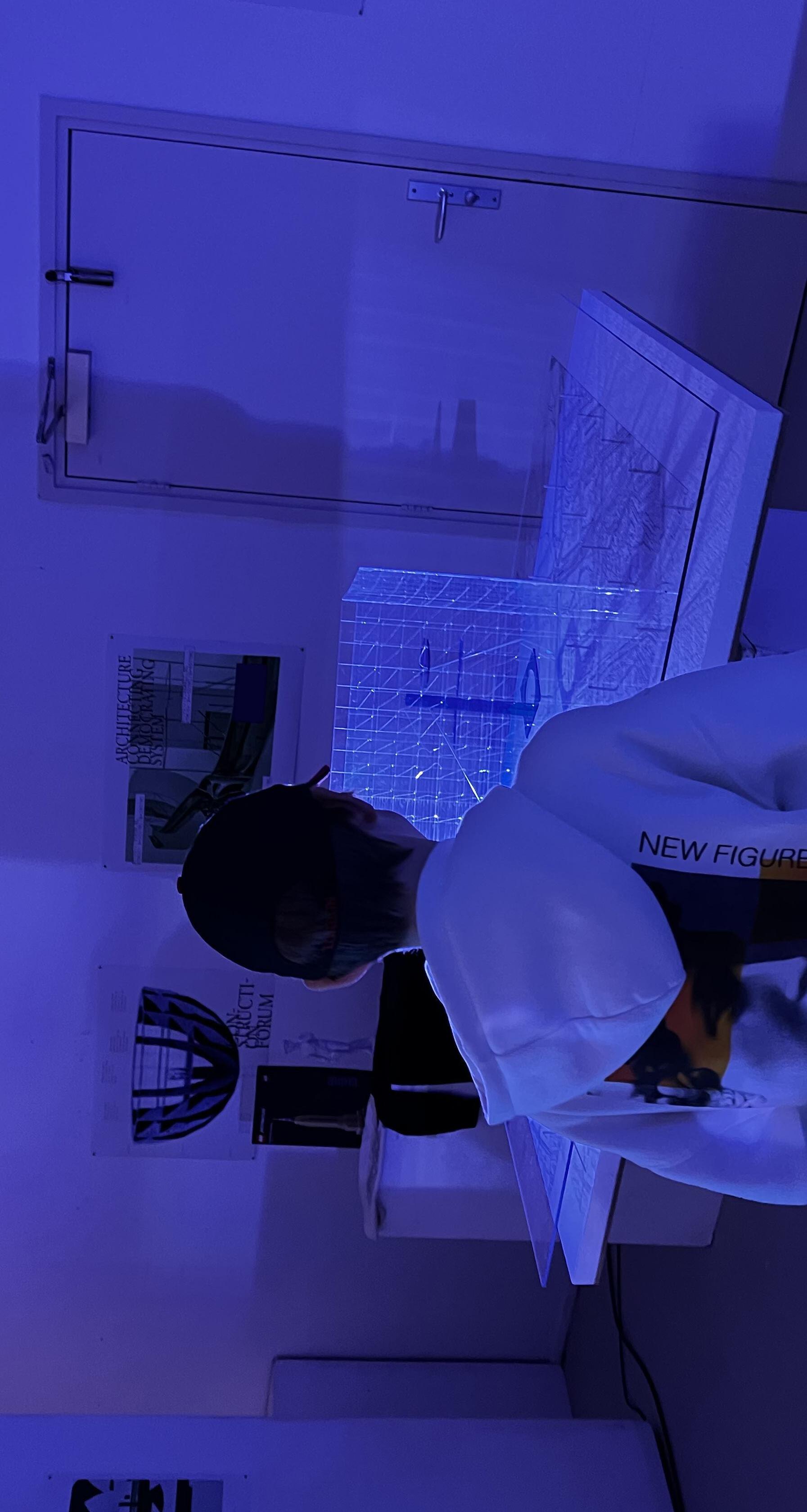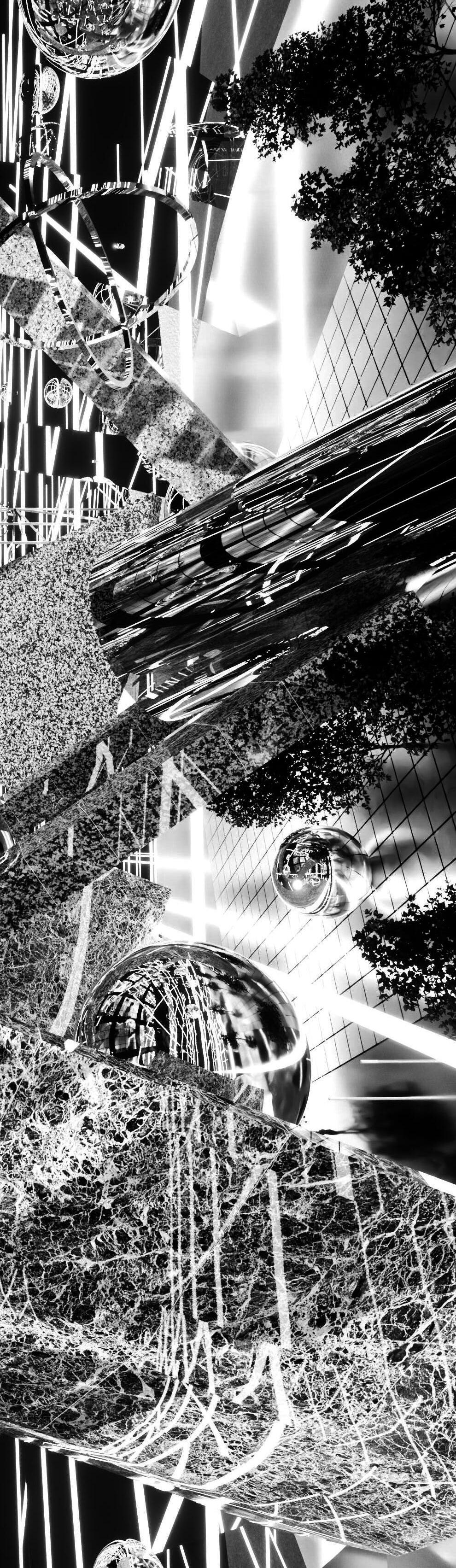 een omgeving doordrongen van straling van satellieten naar grondstations. Zowel de grond als de lucht heb ik ontworpen in ruimtelijke belevingen van technologische terminologie. Met dit ontwerp en deze nieuwe context heb ik een ruimte gecreëerd om verhalen te vertellen die kennis overdragen door middel van de architectuur van de huidige maatschappelijke bewegingen die een bedreiging vormen voor onze vrijheid. Hier heb ik zelf ook al een voorzet gemaakt en toegevoegd aan dit verslag. Door een allegorisch verhaal te schrijven, gaat het over twee personen die een reis maken door deze technologische context en het ontwerp dat ik heb gemaakt. Ze komen tot de ontdekking hoe de macht van het algoritme onbewust hun vrijheid heeft ontnomen.