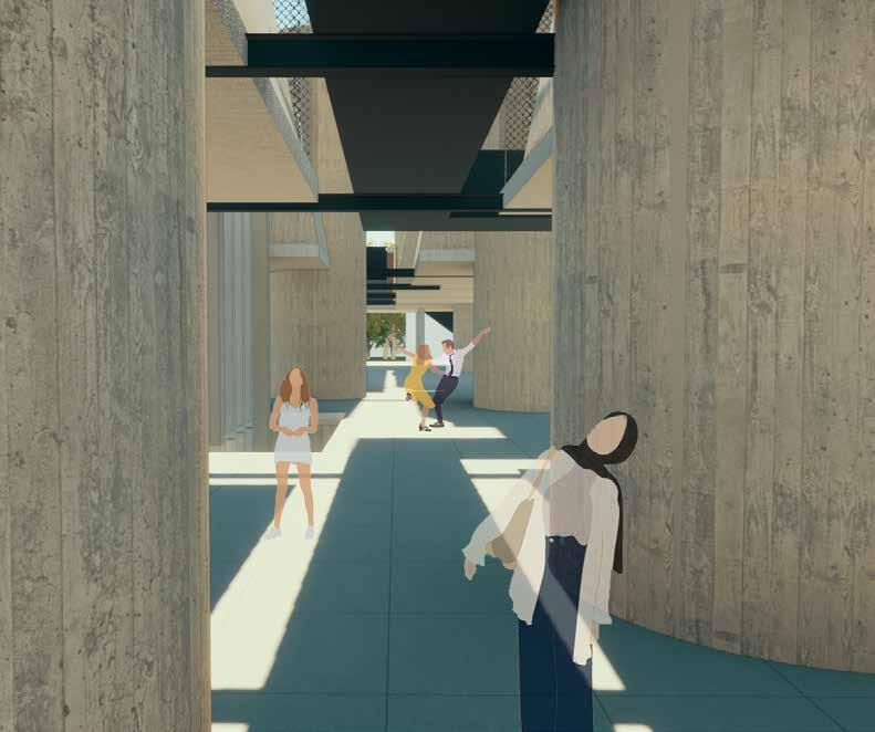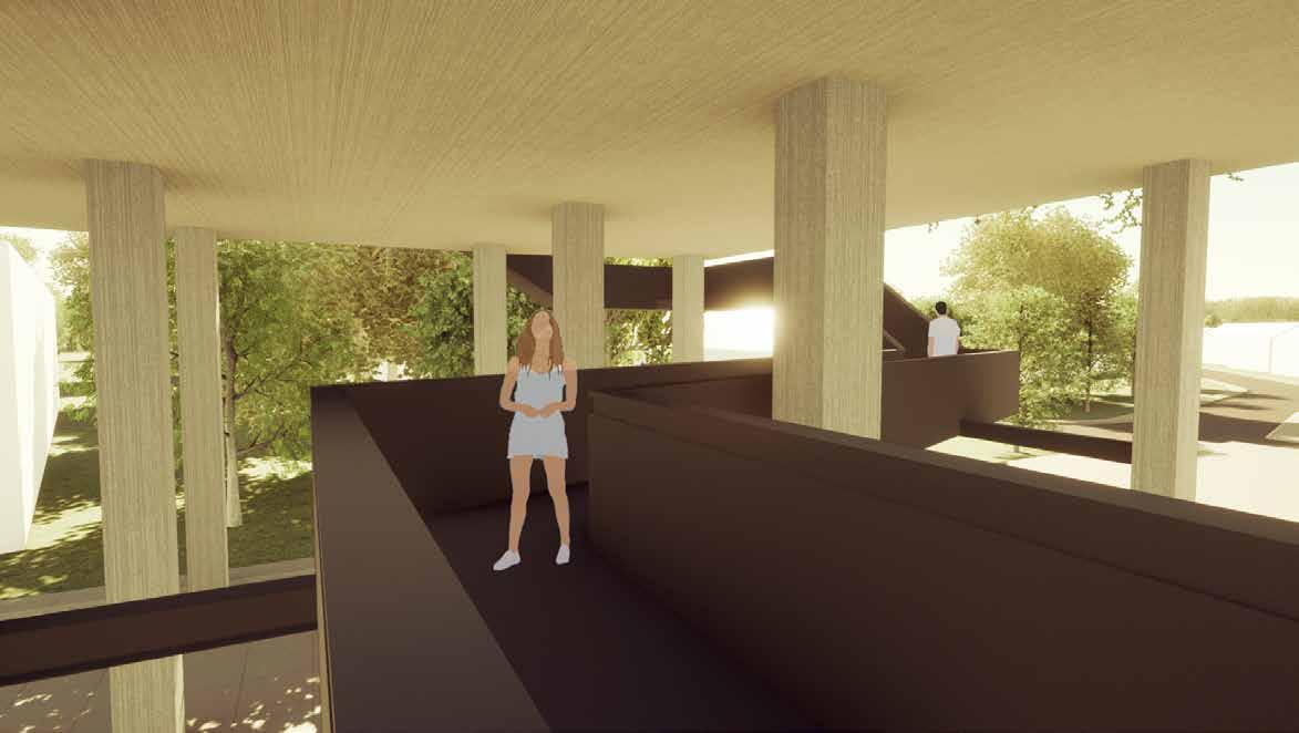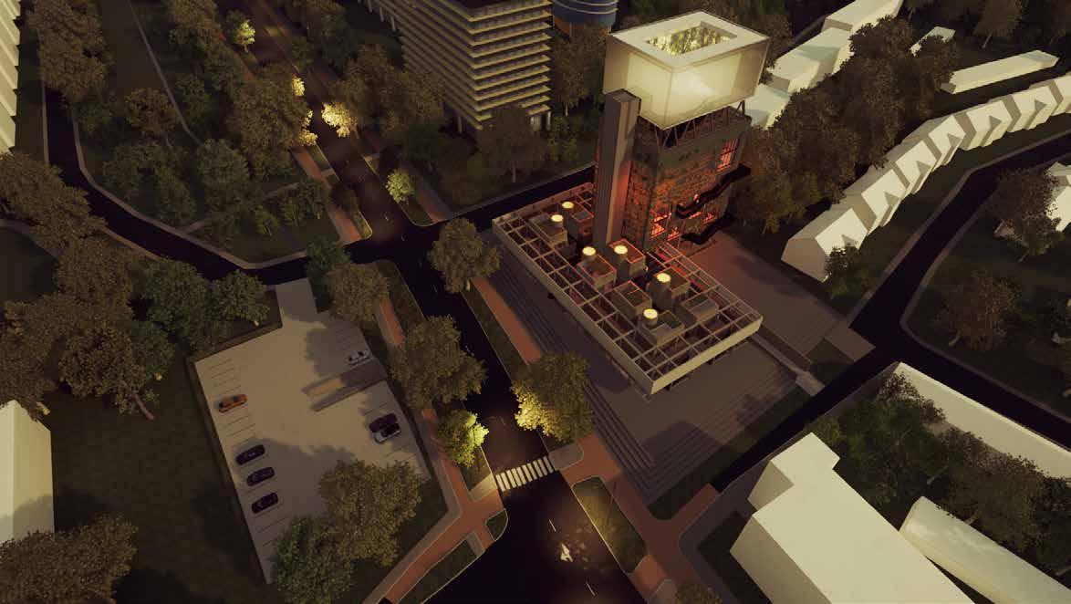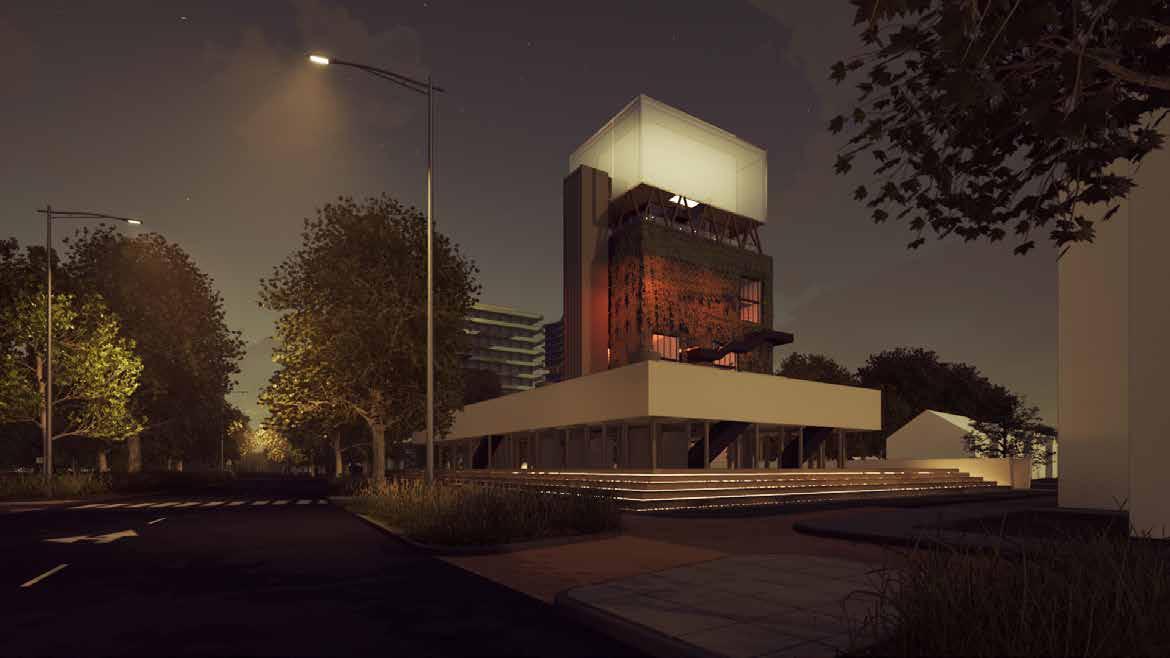 Hiernaast heb ik mij laten inspireren door theatrale architectuur. Hierdoor heb ik het scenario ‘Landmark’ aan gezet doormiddel van de juiste archi tectonische ingrepen. De utopisten van vroeger en de utopisten van vandaag de dag in combinatie met de tijdsgeest hebben mij geholpen om een beter toe komstbeeld te creëren. Waar komen we vandaan en waar gaan we heen, welke veranderingen zijn er nu al zichtbaar waar we eventueel op in kunnen spelen.