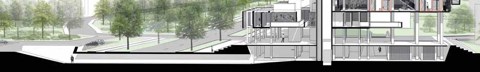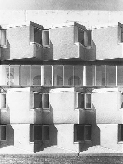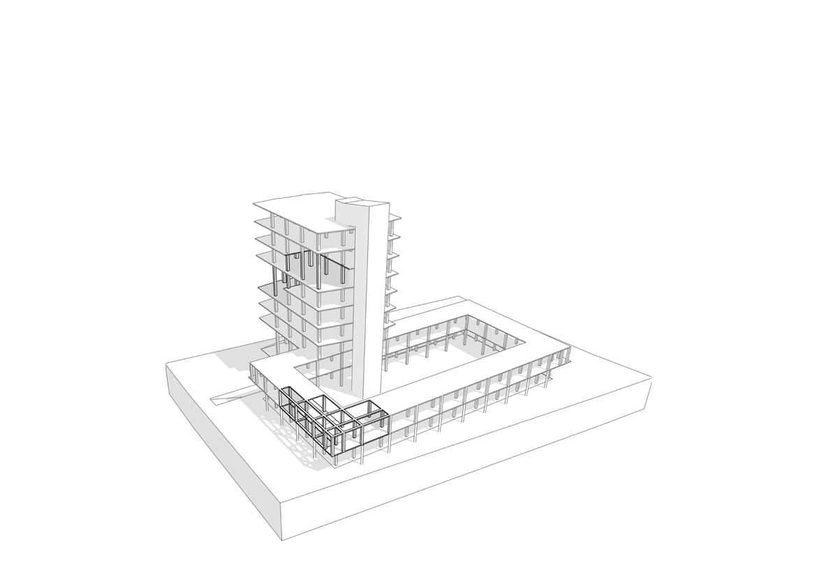 constructie te volgen wordt het gebouw ingepakt met prefab geveldelen waar door de puurheid vertroebelt. In dit project wordt duidelijk géén statement in gemaakt.