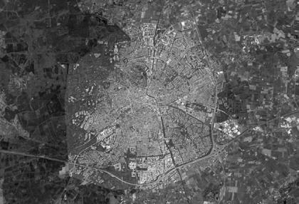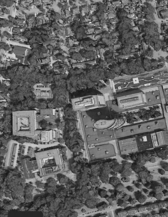 Hiernaast zie je de luchtfoto van het gebouw in zijn omgeving. De belasting dienst is destijds verhuisd naar een grotere setting. Buiten enkele middel grote gebouwen bestaat het gebied vooral uit grondgebonden vrijstaande woningen. Ondanks dat het relatief dicht in de buurt van het centrum gele gen is, doet het rustig en natuurlijk aan door de vele bomen die aanwezig zijn.