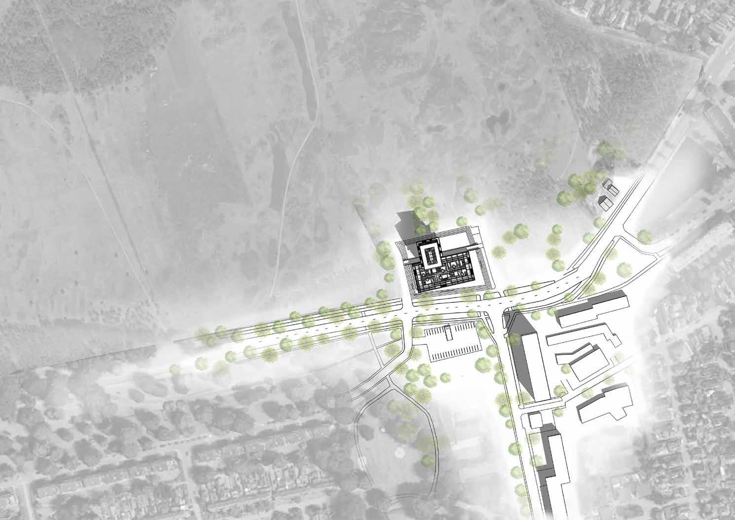 Het gebouw staat dus vrijwel midden in een woonwijk. Dit resulteert er in dat het voormalig belastingkantoor een vreemde eend in de bijt is zoals het er nu bij staat. Door ‘plot’ te den ken / scenario te denken zijn er ver schillende veranderingen mogelijk. De toekomst staat nog op losse schroeven. Er kan van alles gebeuren, elk scenario is mogelijk. De komende jaren zal het getransformeerde gebouw hetzelfde blijven terwijl de omgeving langzaam veranderd. Het gebouw wordt dominant in zijn omgeving. Fuck de context!