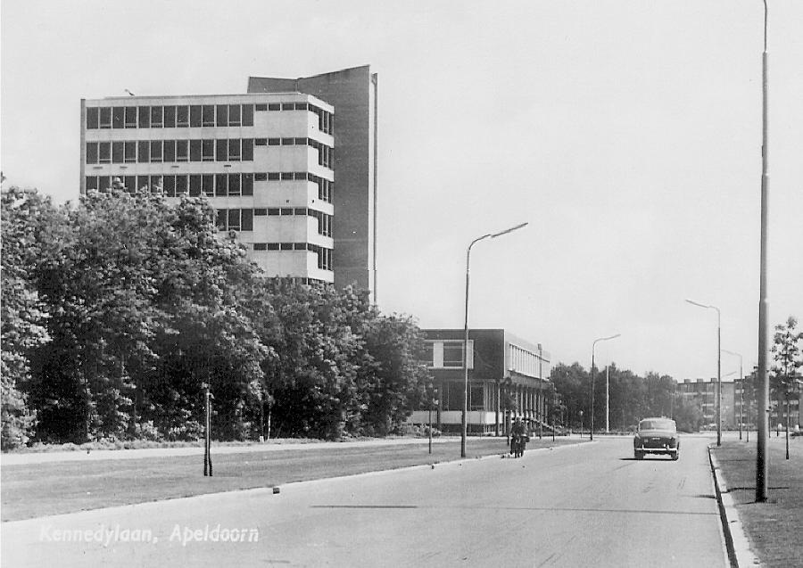 Het gebouw aan de John F. Kenne dylaan in Apeldoorn deed tot ongeveer vijftien jaar geleden dienst als belas ting kantoor. Door de uitbreiding en nieuwbouw links van het voormalig kantoor werd het gebouw overbodig en sindsdien staat het leeg. In 2010 werd het gebouw aangemerkt als gemeen telijk monument. Het object ligt in een groen opgezette (woon) omgeving met onder meer het Sprengenpark aan de overzijde. Ook is vanaf deze kant van Apeldoorn, de Veluwe vrijwel om de hoek. De architect, Piet Zanstra ont wierp het gebouw en het geheel werd in 1962 opgeleverd.