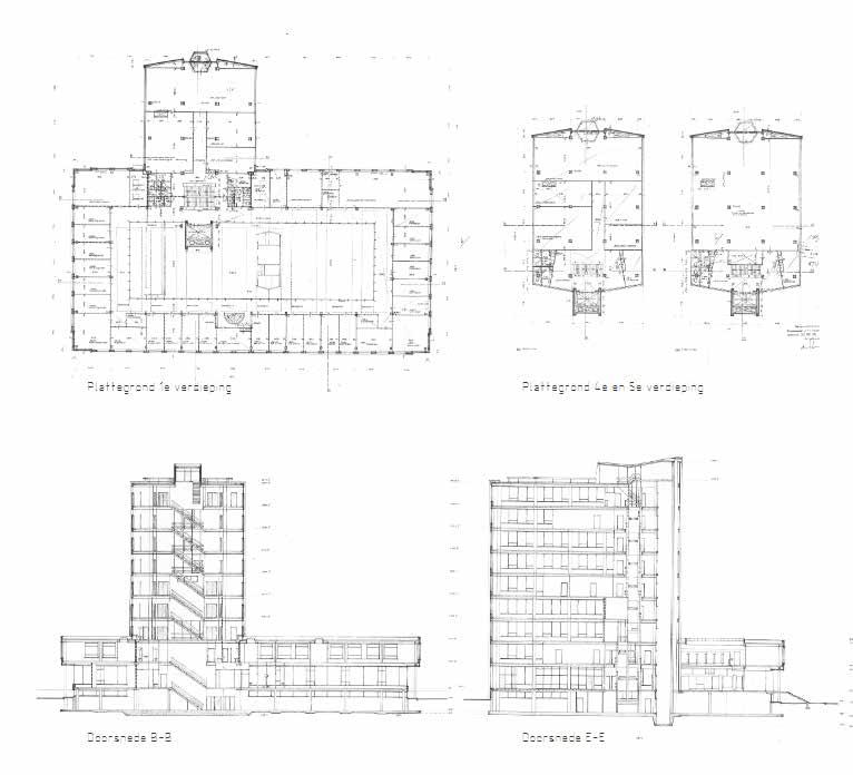 Het lage volume, ‘de plint’ werd des tijds gebruikt voor publieke functies. Het volume is zowel naar buiten, als naar binnen gekeerd. De plint heeft een atrium en daardoor een open karakter. Het hoge gedeelte van het gebouw: ‘de toren’ heeft weer een heel andere iden titeit. Dit vraagt daarom ook om een andere benadering.