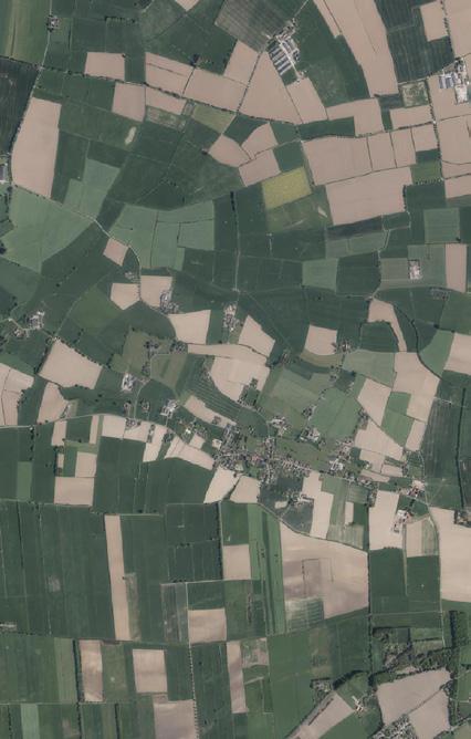 Bodemzicht, kleinschalige geordende akkerbouw in een weelderige setting.