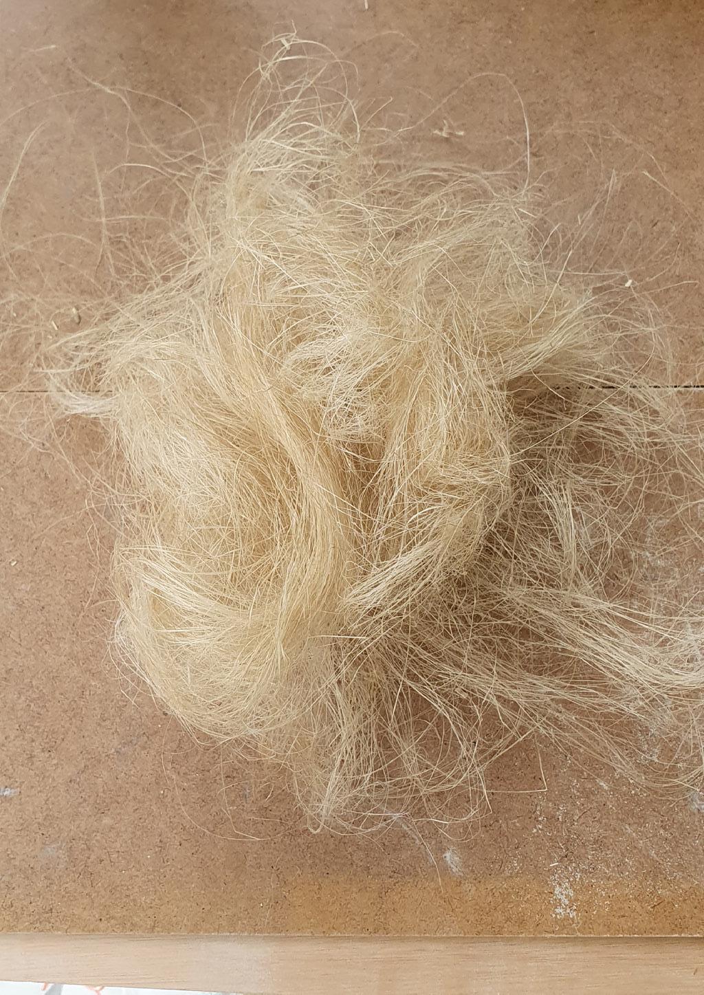 Studiemaquette, grove en fijne kernvezels in aparte lagen.