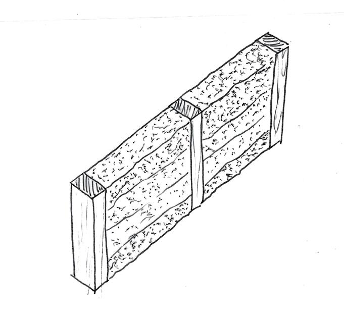 Foto, structuur van gedroogd hennepbeton met verschillende lagen.
