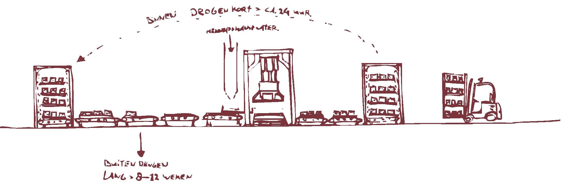 Schets, procesmatige fabriek als lineair programma in het productielandschap.