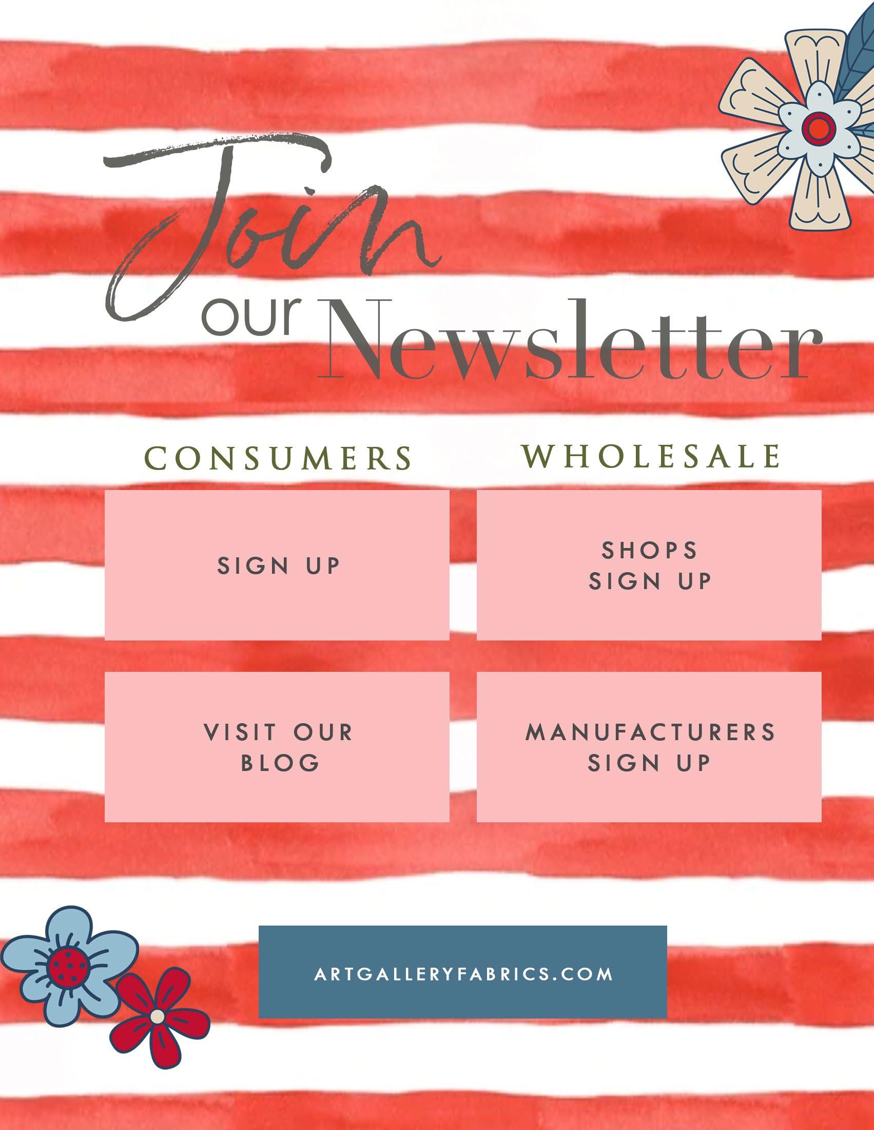 In 2004, our desire to bring a chic and modern perspective to the quilting industry is what inspired us to start Art Gallery Fabrics. Since then creativity, beauty, and design have been our passion. And to this day, they have not changed.