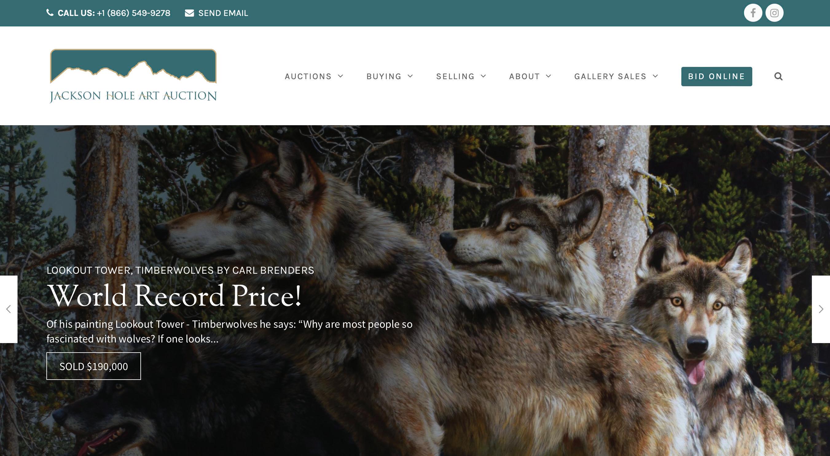 A market leader in American art since 2007, Jackson Hole Art Auction’s three annual sales offer a high standard of works across several genres, including wildlife, sporting, figurative, landscape, Western, and Native American art by both classical masters and contemporary artists. Our annual September auction has been recognized as one of the premier art events in the country and is a signature event of the Jackson Hole Fall Arts Festival, attracting collectors from across the country and abroad. JHAA’s sales feature works from highly collected artists such as John Clymer, Howard Terpning, Bob Kuhn, Carl Rungius, Joseph Henry Sharp, Frederic Remington, John Nieto and Robert Bateman, among many others.