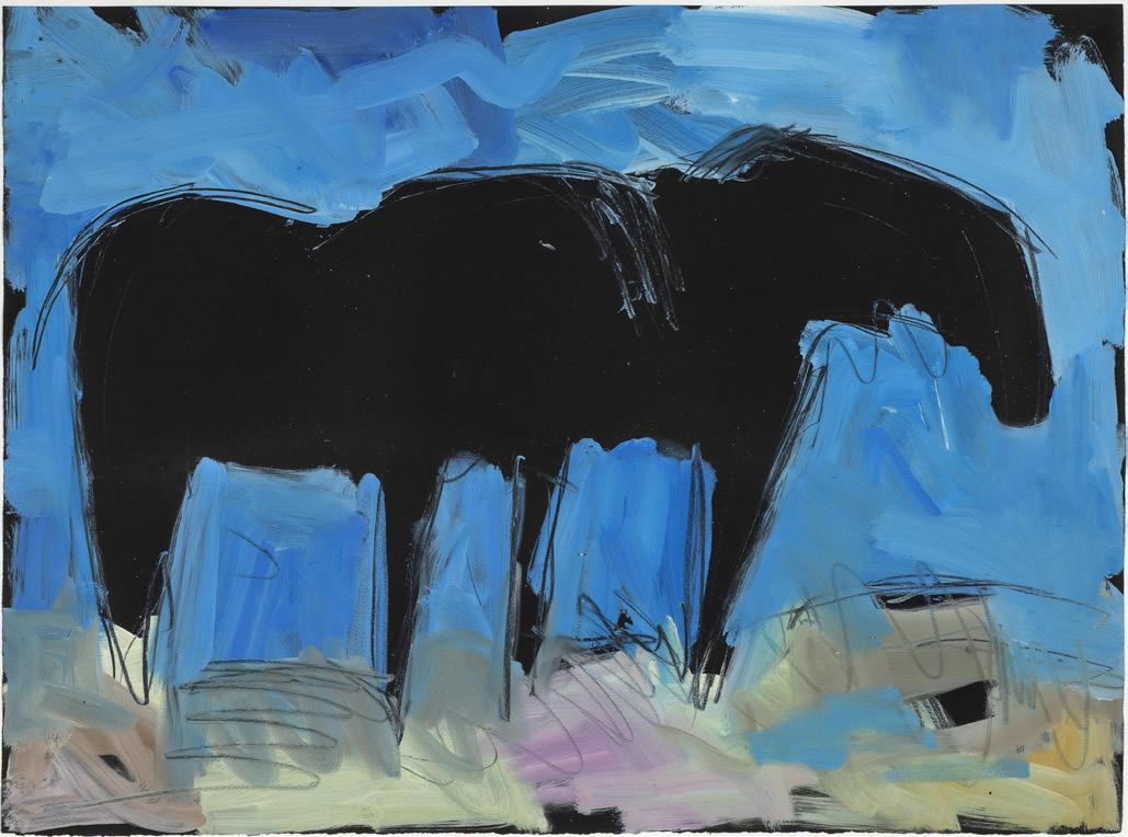 signed and dated lower right: VALOY / EATON / 87 inscribed verso: “RIVER BOTTOM - STUDY” / © 1987 / PRELIMINARY STUDY / VALOY EATON / MIDWAY UTAH