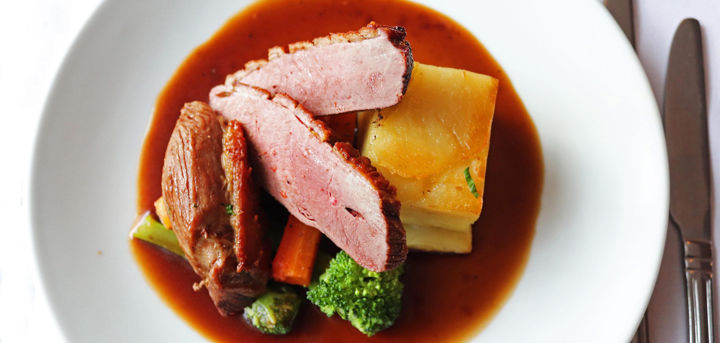 Blade of beef with parsley mash, rosemary jus and seasonal vegetables