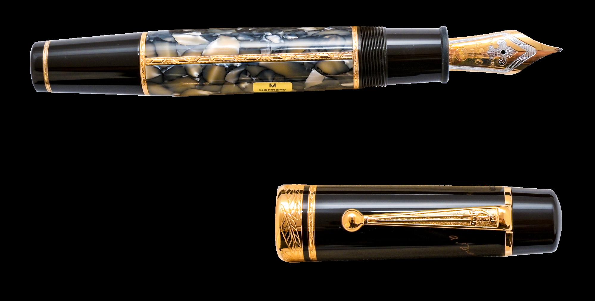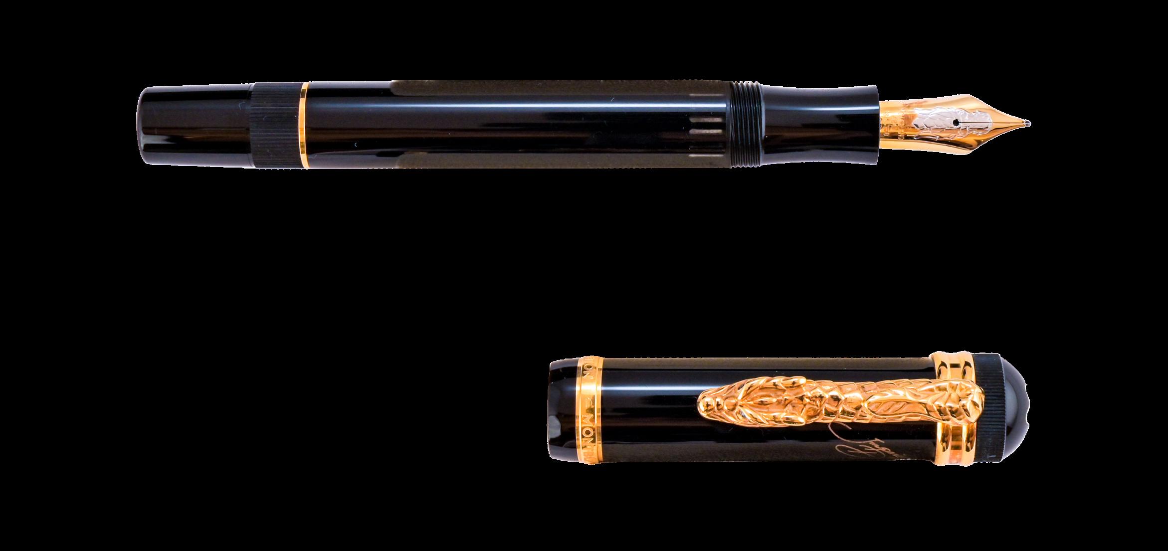 TheMeisterstückImperialDragoncollectionwasinspired bythemythicalcreaturereveredthroughouttheOrientfor centuries-thedragon.Craftedoutofblackpreciousresin, thislimitededitionfountainpenisnumber162ofonly888 intheworld.Thisblackpreciousresinfountainpen featuresan18Ksolidgoldclipsetwithsapphireeyes.This MeisterstückImperialDragonfountainpencomeswithan 18Ksolidgoldnibwithspecialengraving.