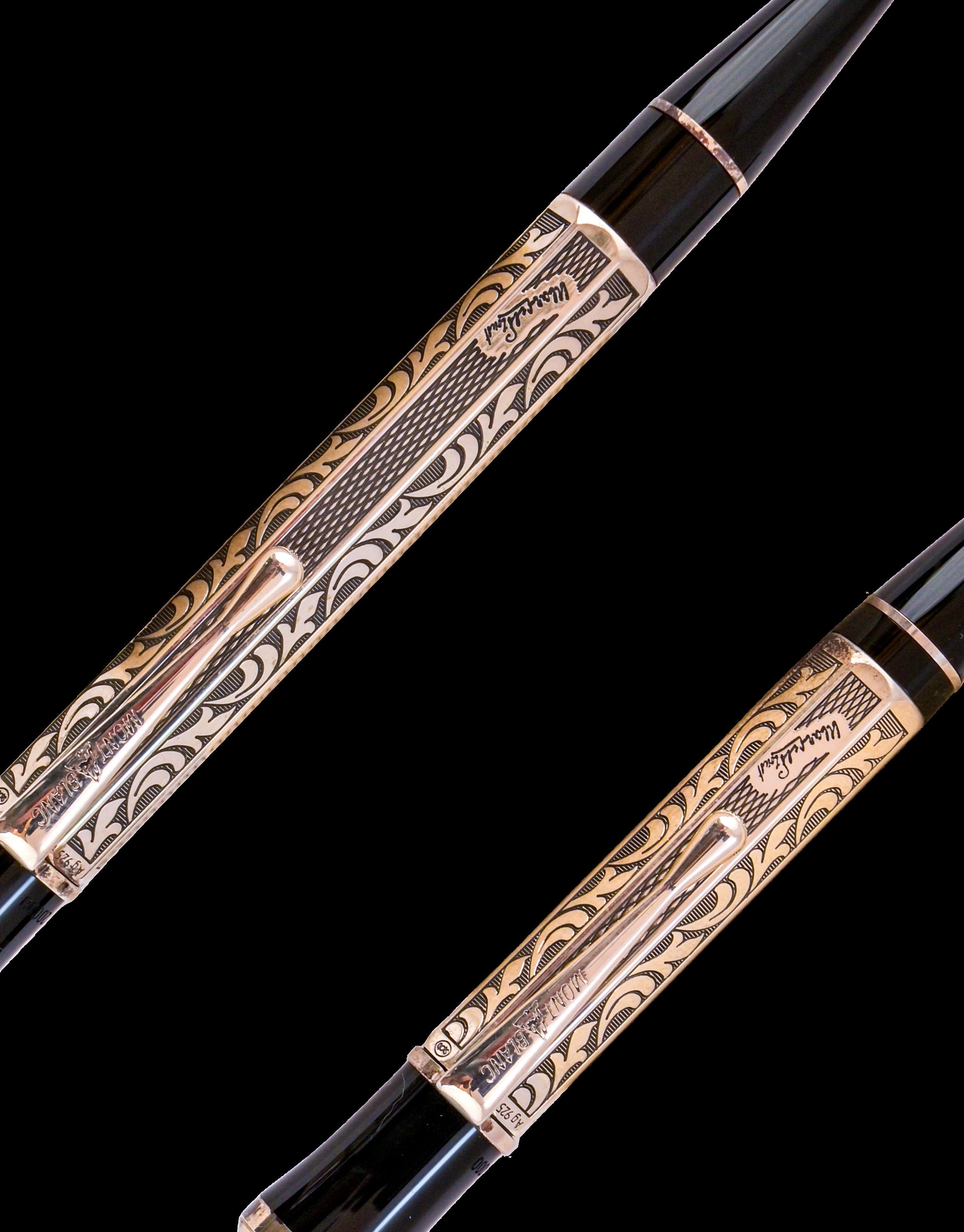 TheMontblancHemingwayLimitedEditionfountainpenisthefirsttobelaunchedin1992aspartoftheirWriters Series.ThecoralredanddarkbrownoftheWritersEditionHemingwayisreminiscentofaMontblancfountain penfromthe1930s–thedecadeinwhichHemingwaycelebratedhisearliestsuccess.Thecap,withitsgold-plated mountingsandclassical,gold-platedclip,bearstheengravedsignatureofthewriter.Rhodiumplatingsandan artisticengravingofamotiffromHemingway’sperioddecoratethehand-cut18-karatgoldnib.