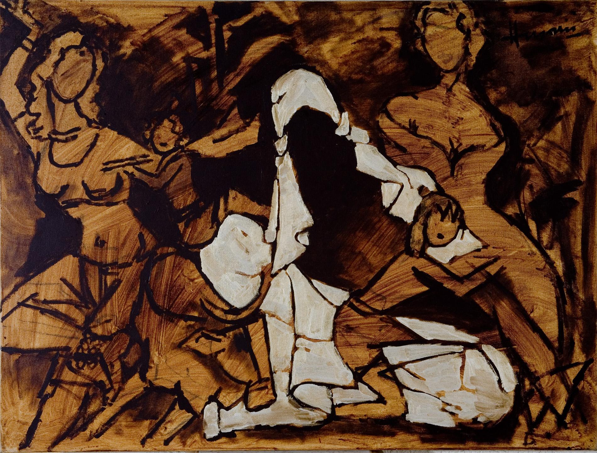 BorninPandharpur,Maharashtra,in1915,HusainmovedtoMumbaiin1937wherehe sustainedhimselfbypaintingcinemahoardingsanddesigningfurnitureandtoys.Aselftaughtartist,HusainwasinvitedtojointheProgressiveArtistsGroupin1947byF.N.Souza afterhisfirstpublicexhibitionofpaintings.Mostrecently,hisworkhasbeenfeaturedin soloshowsincluding‘M.F.Husain:EarlyMasterpieces1950s-1970sattheDavidWinton BellGallery,Providencein2010;‘EpicIndia’atthepeabodyEssexMuseum,Salem,in 2006-07;and‘EarlyMasterpieces1950-70s,atAsiaHouseGallery,London,in2006.Husain wasnominatedtotheRajyaSabha,India’sUpperHouseofParliamentin1986-92,during whichhepictoriallyrecordeditsevents,whichwerethenpublishedin1994.The GovernmentofIndiaawardedhimwithaPadmaShriin1966,aPadmaBhushanin1973 andPadmaVibhushanin1991,allhighcivilianhonours.In1971,Husainwasinvitedto exhibitasaspecialinviteewithPabloPicassoattheSaoPauloBiennale,Brazil.In2004,he wasawardedtheLalitKalaRatnabytheLalitKalaAkademi,NewDelhi.Husianpassed awayinLondonin2011.