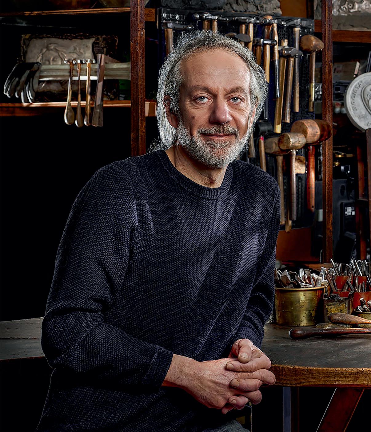 Lorenzo Foglia, who was born in Viareggio in 1971 but has always lived in Florence, epitomises the dedication and expertise of a long-standing lineage of silversmiths and engravers. e current chairman of the Silversmiths of Florence for Confartigianato Imprese Firenze, he was awarded the title of Artigiano OMA and the status of Master Craftsman by the Region of Tuscany in 2012, while in 2018 he was named MAM–Master of Arts and Crafts by the Fondazione Cologni.