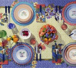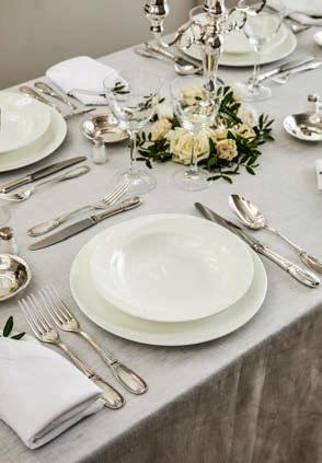 e art of dressing the table with precious linens is a hallmark of Italian lifestyle, where a re ned sense of aesthetics is blended with the spirit of sharing. More than simply laying elegant fabrics over a surface, setting the table is a daily ritual that celebrates hospitality, care, beauty, tradition. Preparing the table is a way to express consideration towards others, and a meal becomes an occasion for genuine togetherness, where every detail contributes to the creation of a special atmosphere.