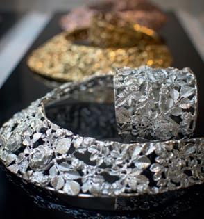 Whether unique pieces or small series, everything is crafted with meticulous attention to detail, from the initial design to the handmade production. He was invited to make the tiara worn by Elizabeth Taylor in the lm Young Toscanini (1988), and master goldsmith Gerardo Sacco turned to him to create the crowns worn by Mel Gibson and Glenn Close in Hamlet (1990), both directed by Franco Ze relli. e winner of numerous awards, Lorenzo also crafted Art Nouveau-style vases and silver chalices commemorating the 50th wedding anniversary of Queen Elizabeth II and Prince Philip. He took part in Italy in Japan 2001–2002, the largest event ever organised to showcase and promote Italian lifestyle and products internationally, which opened in Tokyo with an exhibition dedicated to the Renaissance.
