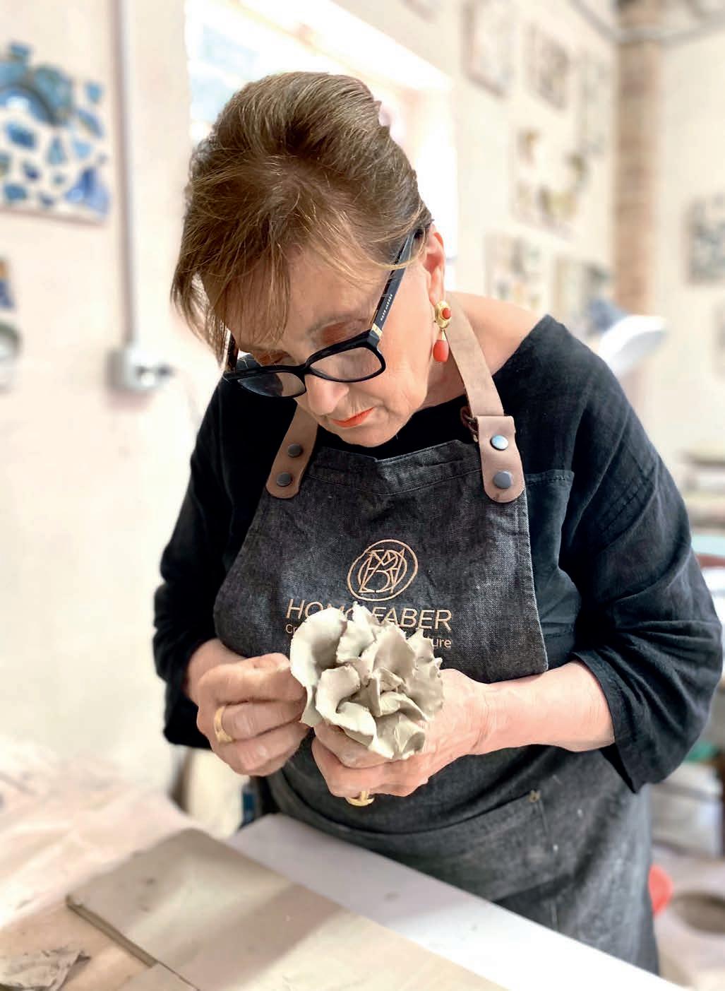 2006, when I was invited to Turin to deliver a lecture on owers throughout the history of art, which is my eld of expertise,” she explains. “On that occasion, I visited the Museum of Fruit, where I discovered the impressive wax collection created by Francesco Garnier Valletti in the mid-19th century, with a mixture of wax, Greek pitch, alabaster chalk and ash. Valletti is the most renowned and skilled wax sculptor of all times, who reproduced hundreds of fruit varieties, several of which are now extinct, to document nature’s rich diversity. I was blown away. I purchased all the books on the subject available in the museum shop and, once back in Genoa, I immediately began studying and experimenting with the techniques of the greatest wax modelling masters, such as Susini and Calamai, whose pieces are on display at the Specola in Florence.” Research, understanding of materials, experimentation, patience, perseverance, creativity and manual skill: these are the secrets of this unusual art, its origins dating back to the Byzantines, Greeks and Romans, who used it mainly to portray the features of the deceased. “I have learned that every type of virgin beeswax is di erent, both in terms of texture and colour. erefore, every creative process follows its own path, which can change along the way.”