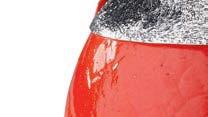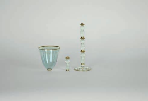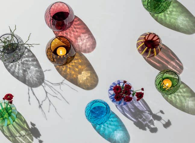 “Mr Parentini has such a keen eye. He can tell the di erence between a Florentine and a Sienese gold ground, for example. Listening to him explain in what way they di er, even though they look exactly the same, is sheer poetry,” continues Belforti. Parentini’s genius, combined with Tiziano Brusamento’s extraordinary skill and expertise, led to the creation of Gira e rigira, an innovative wine glass (patented in 2017) that was selected for the ADI Design Index and nominated for the Compasso d’Oro Award in 2020. A small metal globe placed between the top of the stem and the base of the glass makes it possible to impart a gentle rotating movement to the wine with a stroke of the thumb, enabling the evaluation of clarity, colour and consistency, olfactory notes and taste sensations. is goblet is the evolution of Ikebana, patented in 2001, a transformable drinking glass that can vary in height by adding or removing segments of the stem, depending on the table setting. “We are always ready to pick up a challenge, even when it seems an impossible one,” concludes Simona Belforti. And thanks to this wholehearted dedication, the material itself can reveal its innermost soul.