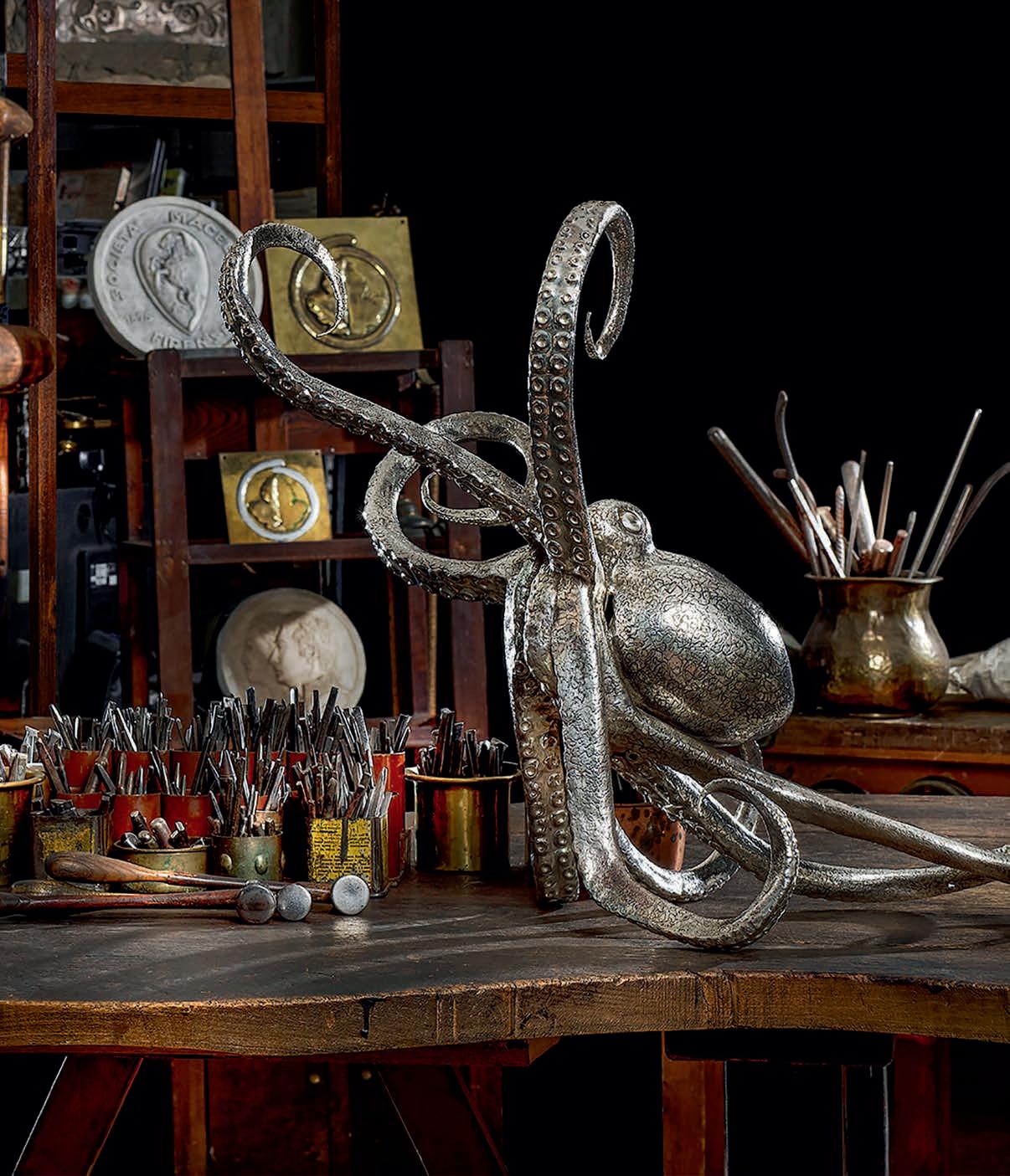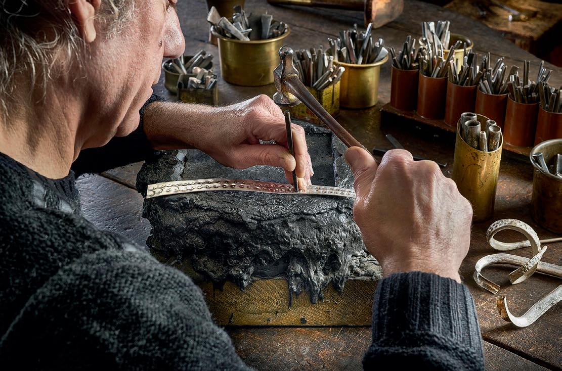 Spanning from classical to contemporary design, from hand sketching to CAD planning, from micro-casting to hammering, right up to the art of embossing and chiselling, the Foglia atelier consistently develops exceptional works that are the expression of eclectic creativity and outstanding craftsmanship.