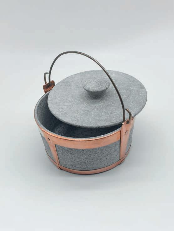 “In the past, all families owned a lavéc. It was reserved for special occasions, such as Sunday lunch, but in reality, it was used almost every day... it was the quintessential cooking pot.” Nicola Bagioli draws on his grandmother’s memories to paint a picture of what daily life was like in the villages of the Valmalenco valley up until a few decades ago. Modest lives endured in challenging conditions, mirrored by the towering peaks surrounding the valley, and only occasionally made bearable by essential and ancestral collective rituals. Turned on a lathe from a single block of soapstone, the lavéc embodies the typical qualities of a ceremonial instrument. Carved from stone and designed to be used over an open re, this archaic and primitive vessel has a long history that stretches back across the centuries. Closely connected to the local community, nature and traditions, its mysterious name is incomprehensible to outsiders and anyone unfamiliar with it. Most importantly, this is the utensil required to perform the ancient liturgy of the family gathered to share a meal, since food has always played a central role in marking important moments. e artisanal production of lavéc pots, which once employed over 70 turners