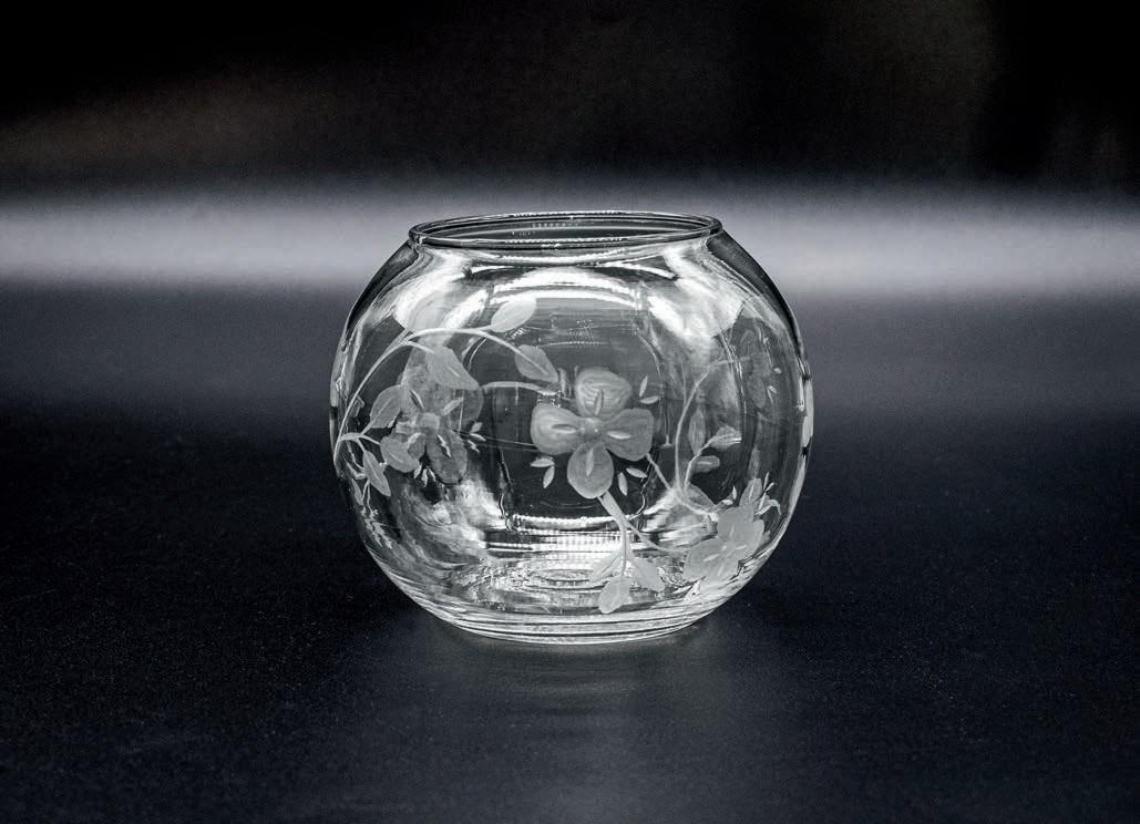 Vanessa Cavallaro is the only glass master engraver left in Altare, where she has chosen to live and work. Born in Savona in 1971, Vanessa revealed her uncommon talent at the age of 10, when she began exploring the demanding art of wheel engraving. She honed her skills in this elaborate technique by practising in her father’s workshop, developing remarkable mastery within a few short years. is apprenticeship model has long characterised the history of glass, where all masters received their training in workshops from childhood or soon after. Murano’s history perfectly exempli es this practice.