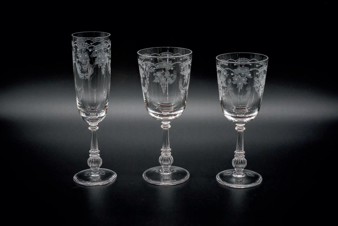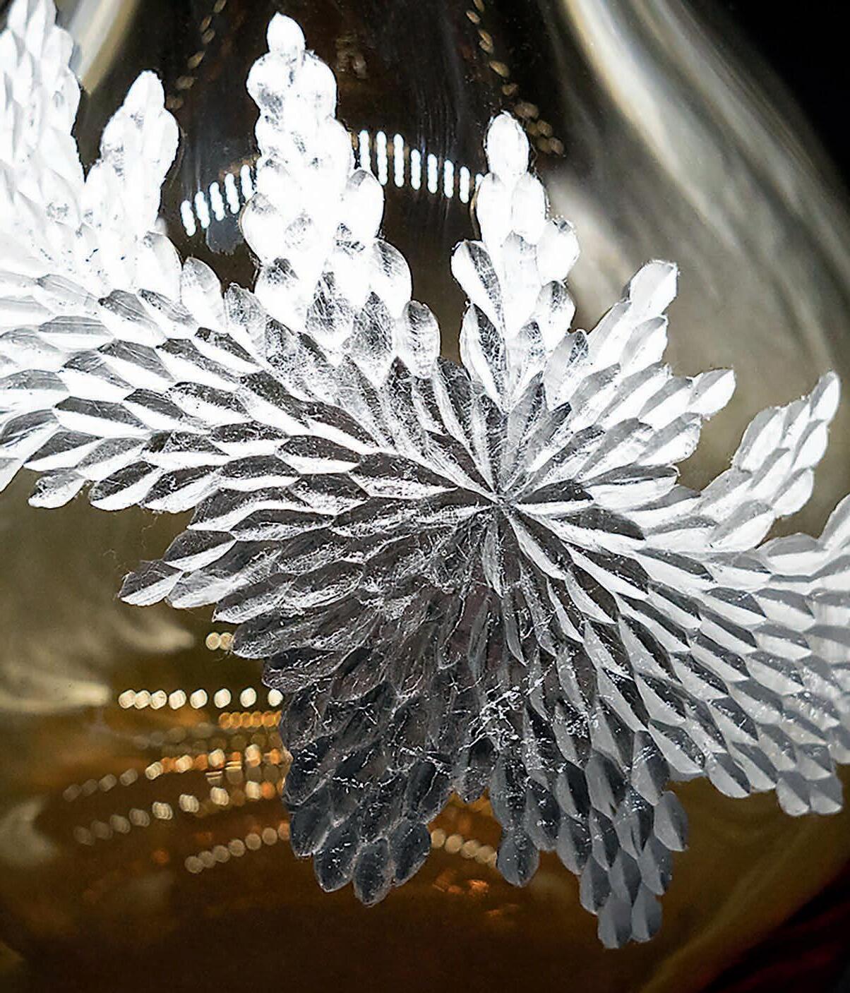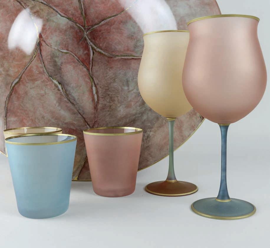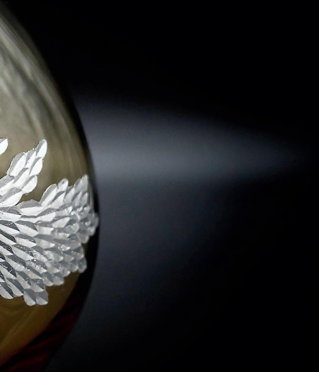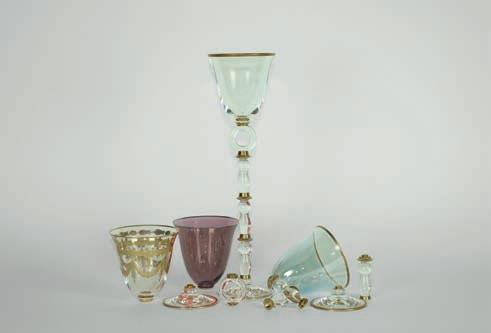 Human gures, landscapes, owers, grape bunches, animals, ballerinas, shells, commemorative motifs, delicate geometric patterns, coats of arms and monograms—all engraved into the glass—give lightness, depth and brilliance to blown crystal, illuminating the most elegant tables. In her latest work, Vanessa has also introduced gold leaf, re ecting her passion for experimentation and innovation.