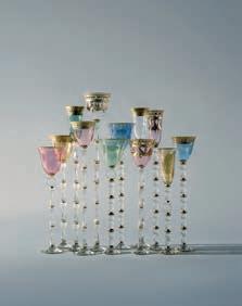 Vetrerie di Empoli, bicchieri Ikebana, 2014. Realizzati in vetro e arricchiti da dettagli in oro, si distinguono per un sistema modulare brevettato nel 2001, che permette di personalizzare ogni bicchiere combinando diverse coppe e steli. Un design innovativo che unisce estetica e funzionalità.