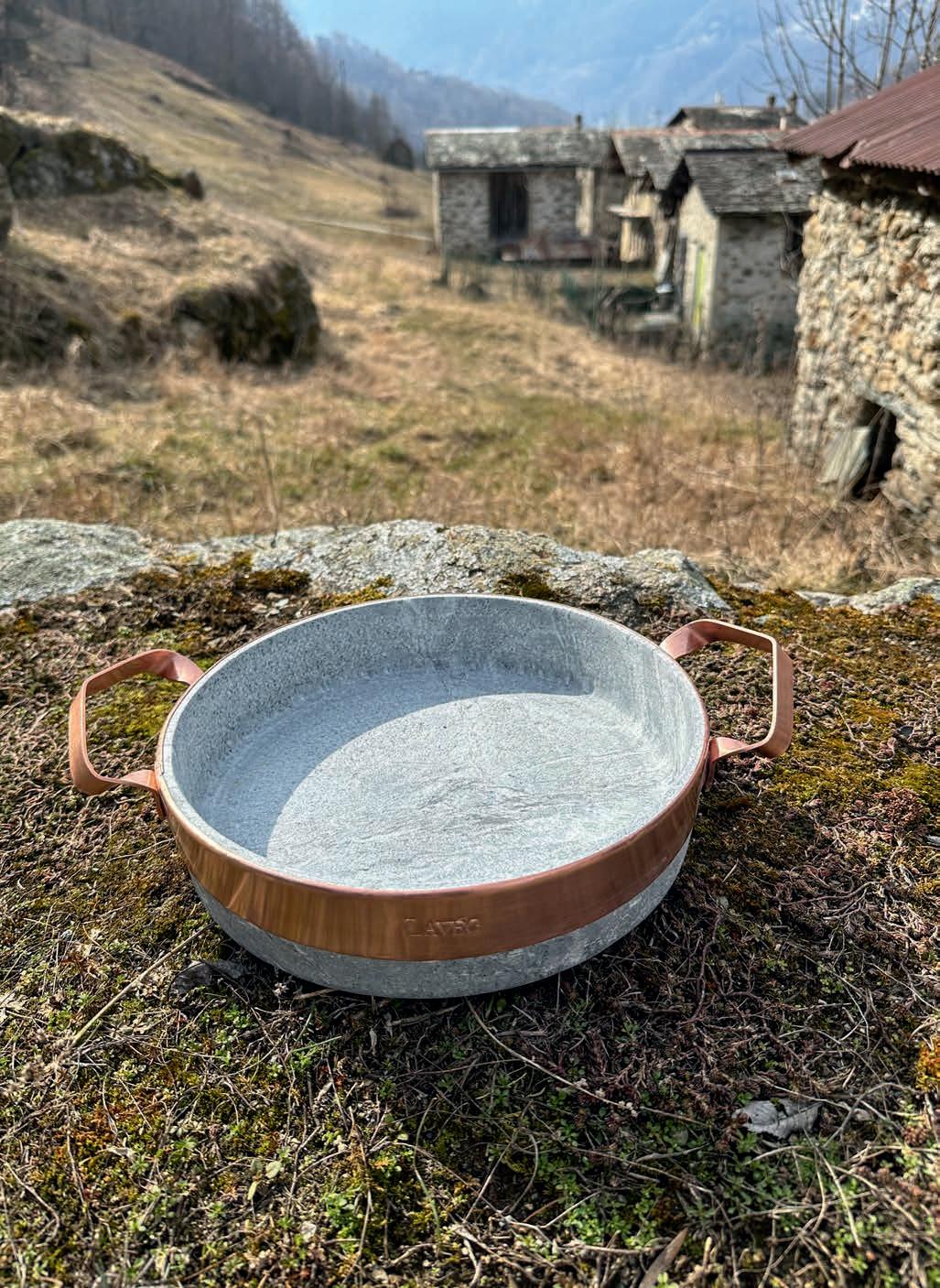 Far from being sentimental, the story of the lavéc is based on an ancient celebration that has taken on a contemporary dimension. e traditional Valtellina cooking pot, carved from a single block of soapstone, was once a household item commonly taken to the table to celebrate family gatherings in a simple way. With the disappearance of the laveggiai (pot makers), the tradition almost died out, until a young craftsman by the name of Nicola Bagioli decided to revive this disappearing craft, and turned the lavéc into an ally of chefs and epicureans.