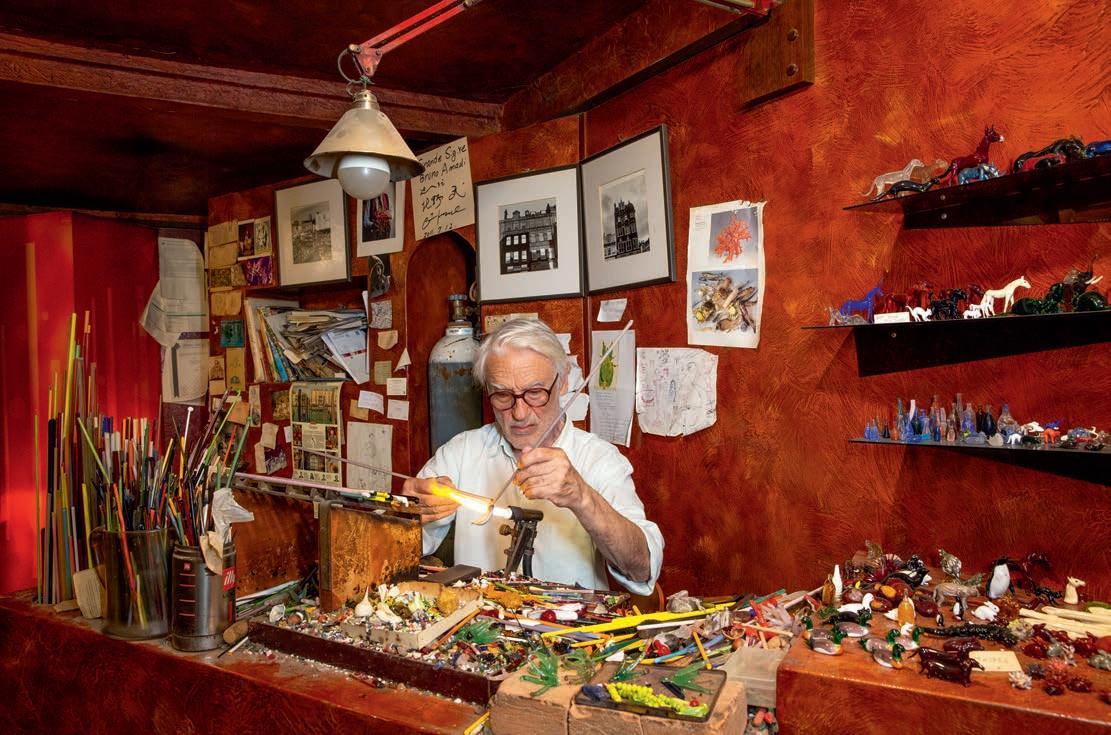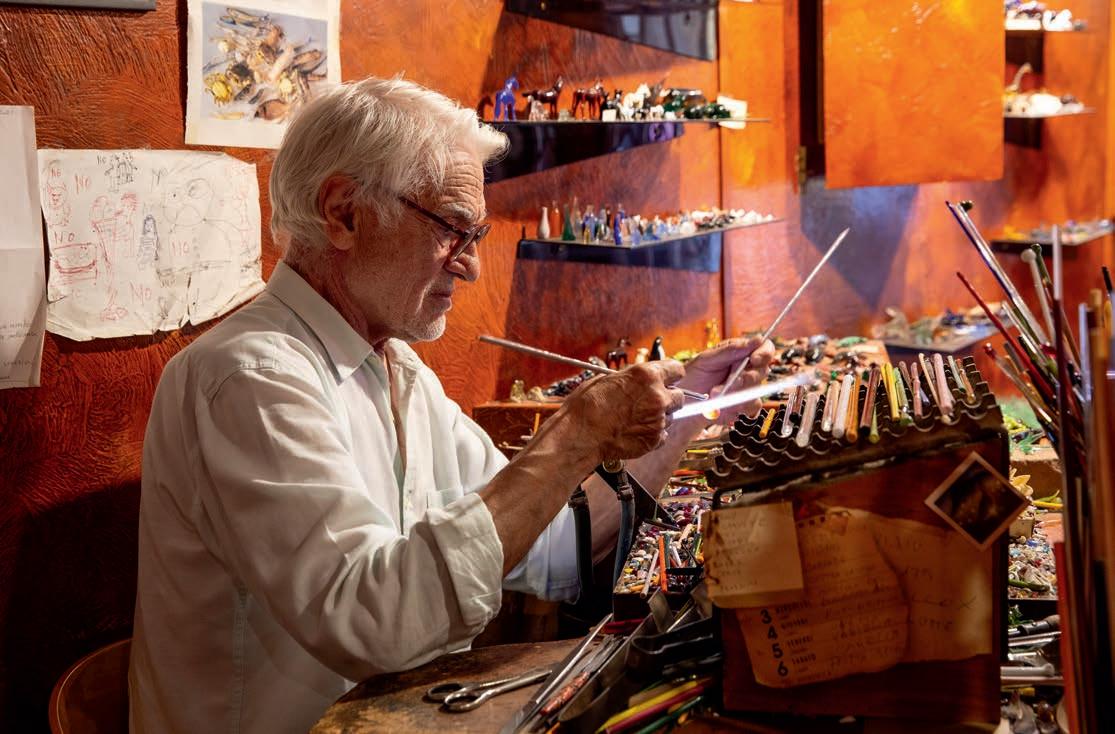 In order to stay focused and shield himself from the never-ending stream of tourists drifting through the city’s narrow streets, several years ago Bruno Amadi decided to keep the shutters closed while at work. Today, he is one of the last remaining artisans active in a neighbourhood that has gradually lost its unique character and charm. His daughter too has chosen to follow a di erent path, and will not continue his legacy. Luckily for us, every day the master craftsman strides into his workshop and sets down to work. Completely absorbed in his craft, isolated from the buzz of tourists chattering in every language, his hands busy creating miniature wonders full of poetry.