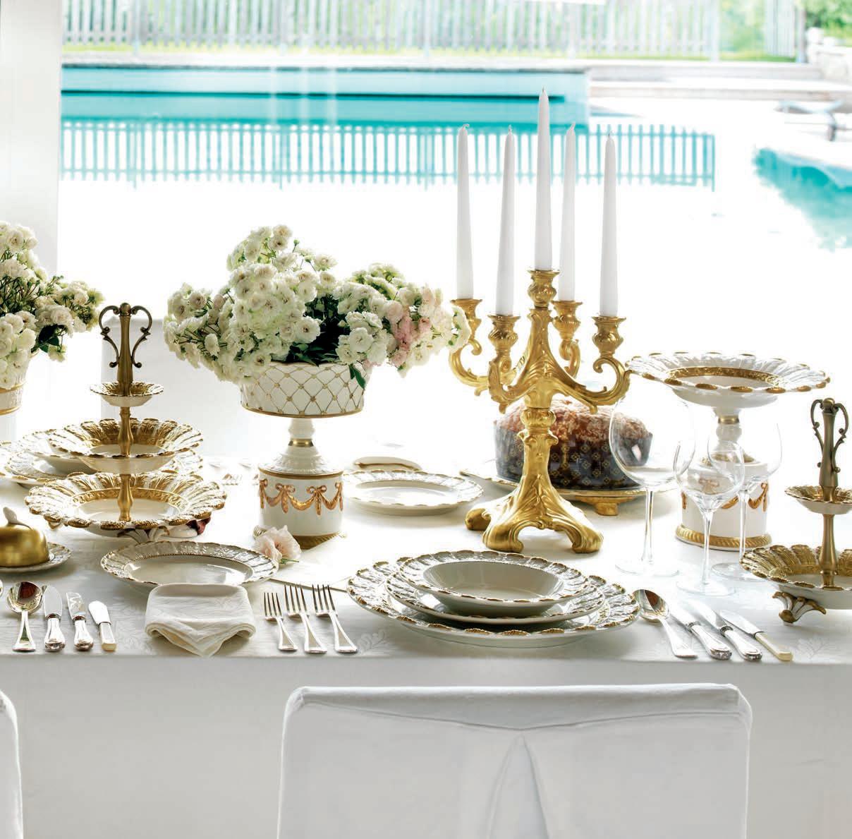 Yet lavishly laid tables are indeed the most powerful source of marvel. If marvel is the strongest of emotions, enabling us to discover, day by day, new things and new meanings in what we see before our eyes, then beauty is the privilege of those who, like the Villari family, are constantly lled with marvel and capable of uncovering the hidden meaning not only in individual objects but also in the connections between objects, materials and gestures. Cultural and narrative connections thus contribute to the perception of beauty as much as the splendour of individual works, because marvel is the messenger that lls beauty with meaning, transforming it into something memorable. Since bygone days, the dining room has been a speci c and well-de ned environment in the home, providing a convivial space where we learn to coexist and appreciate the value of sharing. It is a gateway to the world, which we explore through the celebration of human relationships. To perceive the superlative beauty concealed behind meanings that need to be explored, narrated, disseminated. To engage in the daily pursuit of the most magni cent collection that each person is called upon to create: an assortment of unforgettable moments, in which distant dreams preserve the exoticism of imagination as they become the natural embodiment of our aspirations, enabling us to develop our own exquisite, highly personal, imaginative fantasies. No other material could transform all this into reality, except for porcelain: strong, brittle, gleaming, dazzling. Like the dreams that Cesare and Silvia Villari have managed to turn into reality with the alchemical re of passion.