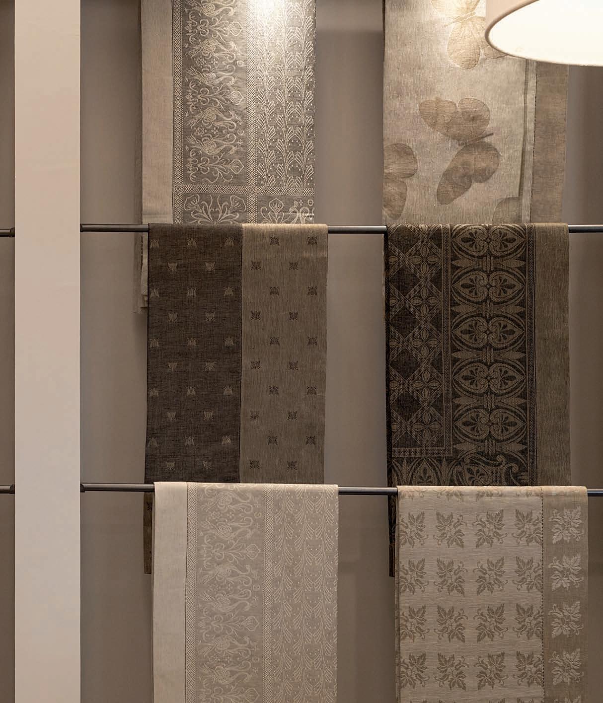 “We never had any doubts: we stuck with tradition. It was a winning move, even if it seemed pretty foolish at the time. e truth is that what sets our production apart rests precisely in the way it is carried out, using old shuttle looms that we look after with the utmost care. Patterns are not printed, but obtained from the interweaving of warp and weft. What our customers buy from us is a piece of history, of our family history. We create yarn-dyed fabrics, and because we are artisans, we can tailor each individual item. We o er a sensory experience that engages sight, touch and smell. Our products are not something you can buy with a few clicks, although thanks to the involvement of my wife, who is an interior designer, we have taken steps to address this aspect too. It’s comforting to see that young people are rediscovering the pleasure of a beautifully laid table, and what it stands for, not just in terms of its aesthetic appeal. Setting the table is an act of love, a sign of respect. e table captures the memory of a moment, re ecting the character and personality of the host, just like a tailored suit.”