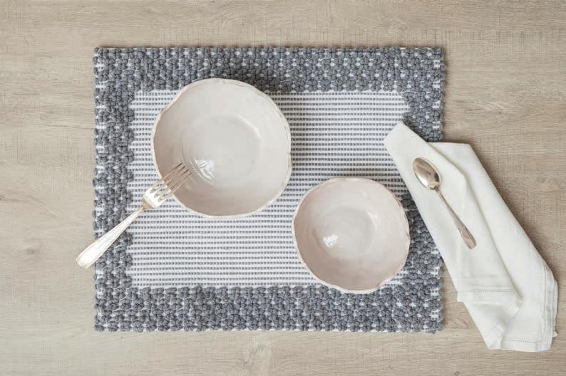 A signi cant part of Marcella Sanna’s work focuses on textiles for the table. e beautiful fabrics that were once integral to everyday life are transformed and renewed to meet the demands of modern living. In her creations, tradition is never just a reference, but living matter that engages in dialogue with contemporary aesthetics. For Marcella, weaving is much more than a craft: it is an act of remembrance and anticipation, a way to rediscover the value of time, dedication and the beauty of workmanship. Every thread she weaves re ects Sardinia’s intimate soul, which continues to reveal itself to the world through her graceful and resolute hands.