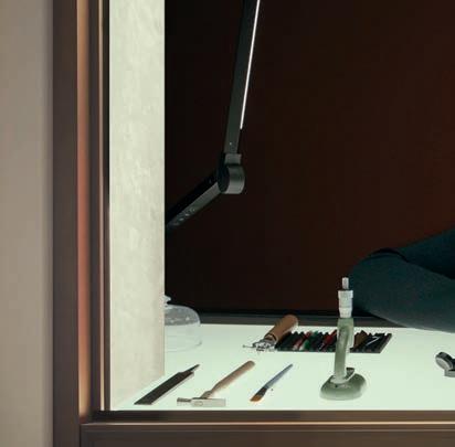 In her view, what makes her pieces instantly recognisable is the unique range of greys she achieves by carefully selecting and grinding her stones. When asked about her sources of inspiration, she replies: “Everything can be inspiring— nature, the landscape, art, crafts, fashion…” Asked about her life outside work, she seems surprised: her work, she says, is her greatest joy and ful lment. And what makes her truly happy? Completing a piece exactly as she envisioned it— and to the highest standard.
