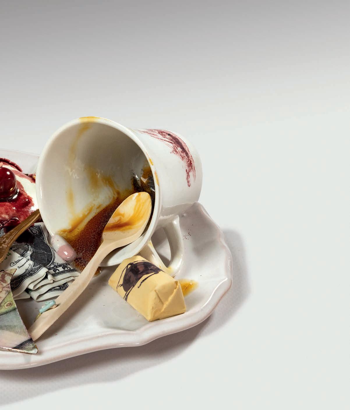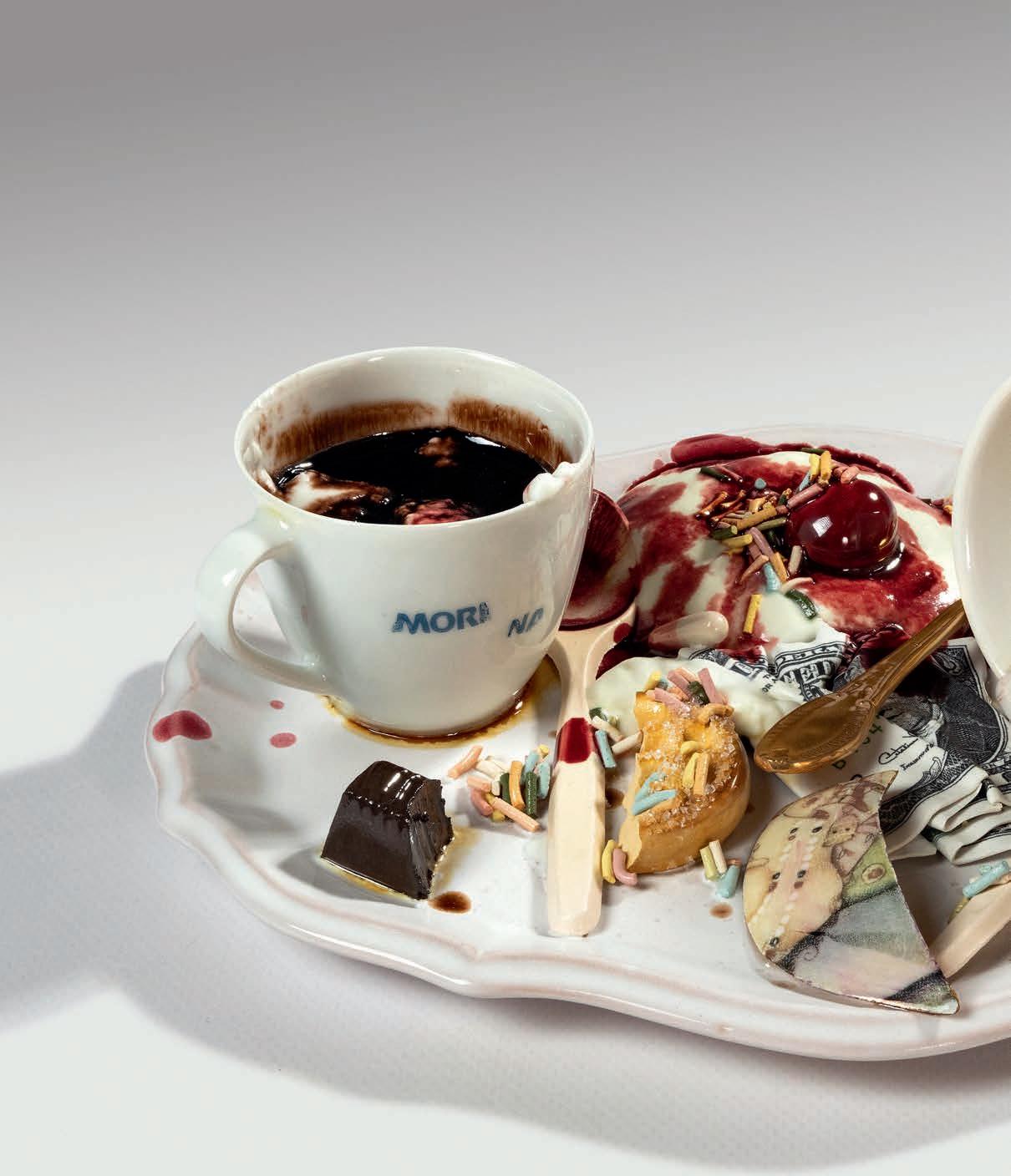 During the 1990s, Bertozzi & Casoni focused on more complex projects, mostly connoted by surrealist in uences: painted maiolica works in which hyperrealism is pursued to the extreme, incorporating industrial techniques and materials such as photoceramics. emes such as the contemplation of the present and human impermanence thus became central to their artistic expression.