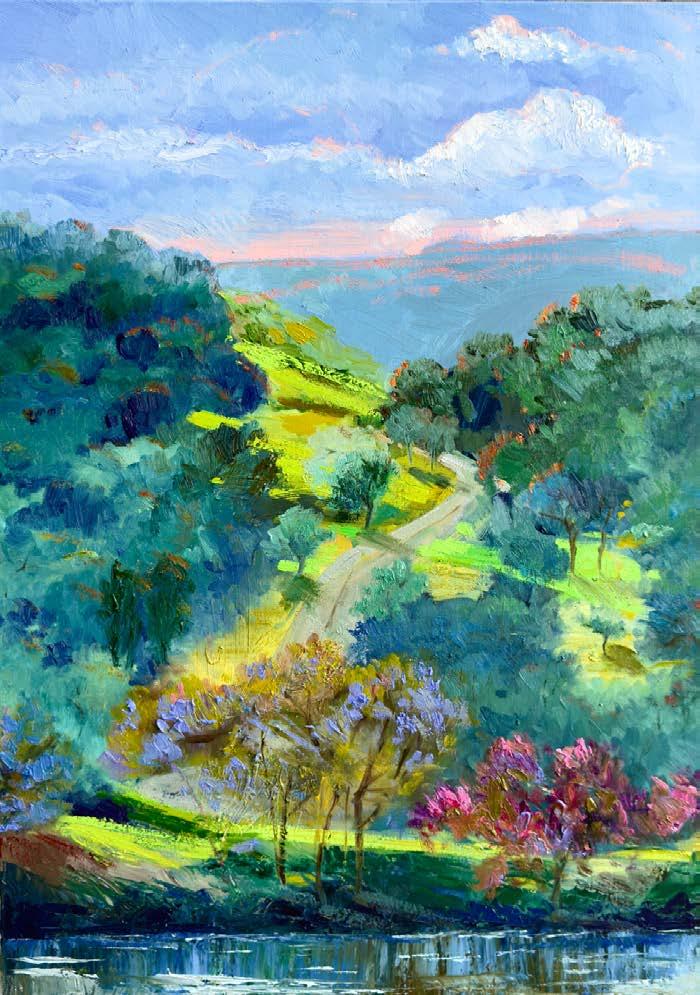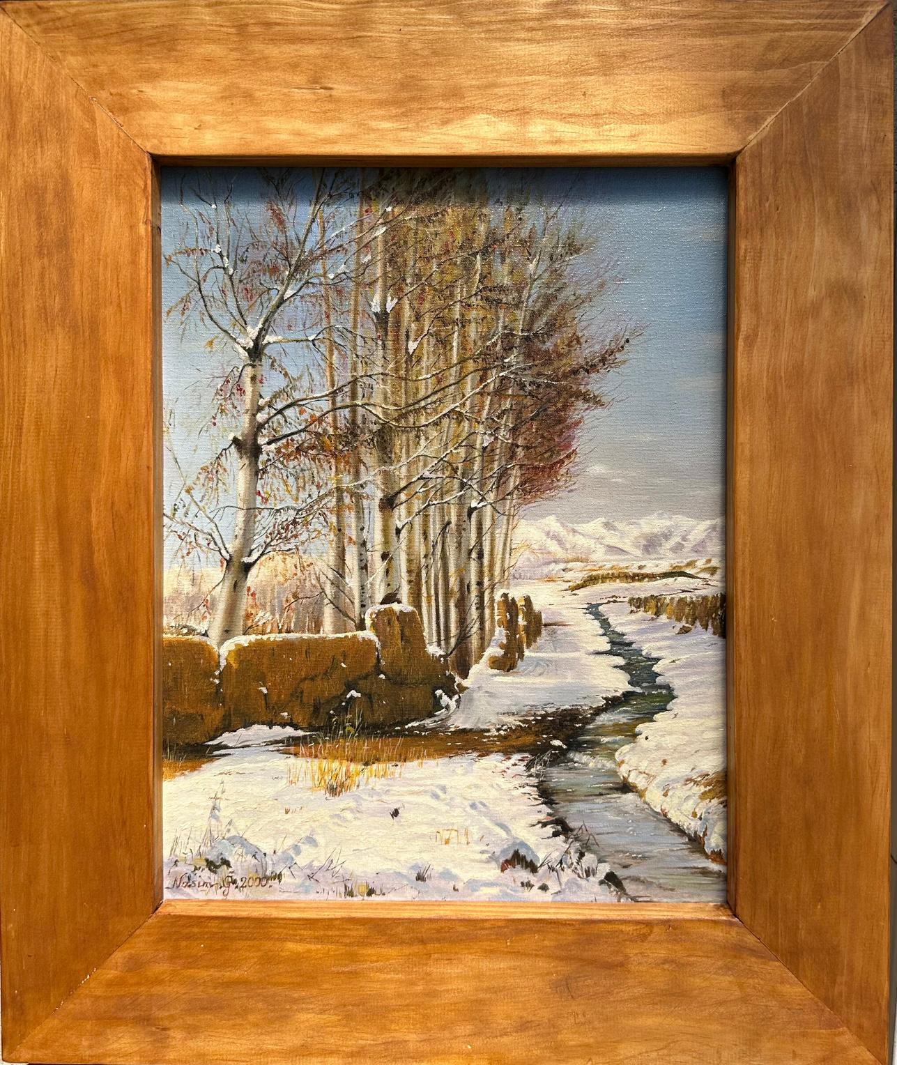 Vandart Studio returns with a work of an entirely different register from their butterfly series — and it is just as accomplished. Unfold is a winter landscape of quiet, almost aching beauty: bare trees dusted with snow, a narrow stream threading through a white field, distant mountains fading into apalebluesky.Thepaintinghasthewarmthandintimacyofa memory,thekindofsceneyoucarrywithyoulongafteryou've left it behind. Vandart paints with a delicate, assured hand, andthelightinthiswork—goldenandcoolatonce—issimply wonderful.