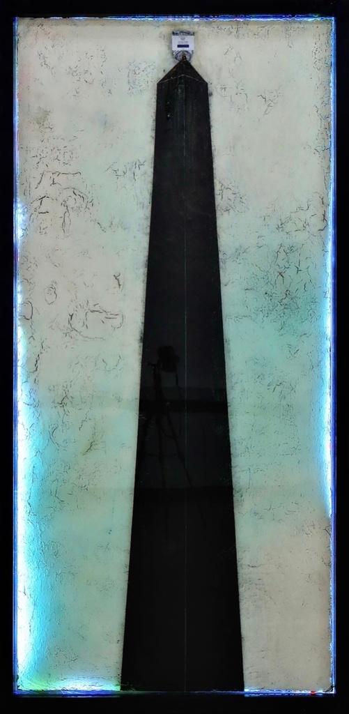 Yuya Chujo's Babel / Tower of Life is a work with genuine presence. A tall, jet-black obelisk rises through the centre of the canvas against a pale, softly textured ground — ancient and monolithic, a form that speaks of human ambition, of reachingupward,ofthestorieswetellaboutwhywebuild.LED light glows around the edges of the frame, giving the whole work a luminous, almost sacred quality. It is a large, commandingpiecethatinvitesyoutostandbeforeitandthink —aboutheight,aboutaspiration,aboutwhatweleavebehind.