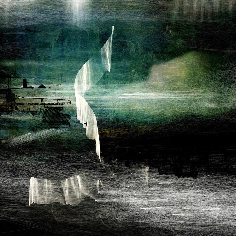 Ivana Gagic Kicinbaci's Threshold is a photograph that exists somewhere between this world and another. A luminous white form — spiralling, weightless, like a breath or a ghost — floats through a darkened, layered landscape of teal and grey, the ground below it scored with delicate lines, the atmosphere around it dense and dreamlike. Printed as a limited edition of threeonHahnemühlePhotoRagSatin,theimagehasavelvety depth that suits its subject perfectly. This is a work about the momentbeforecrossingover—whateverthatmeanstoyou— anditishauntinglybeautiful.