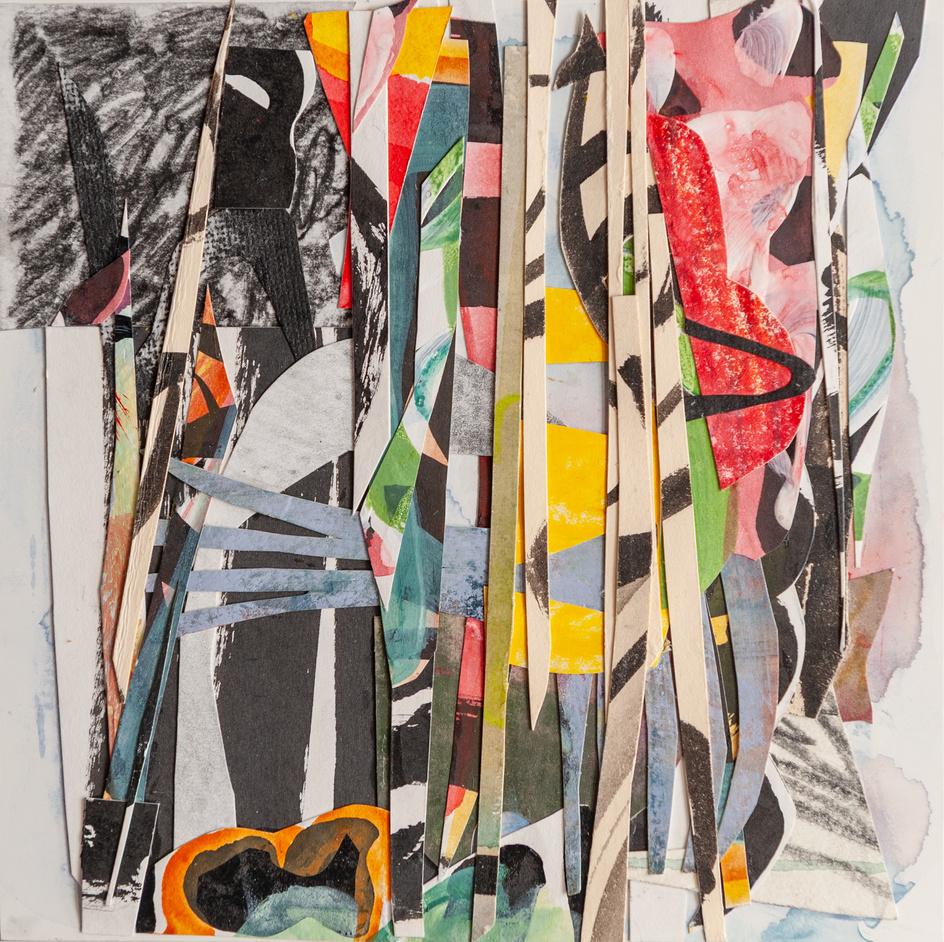 Marvel A Maring's Octobre 2025 is a collage of tremendous visual energy, strips and fragments of paper in black, red, yellow, pink, and green layered and interlocked into a composition that buzzes with movement and colour. The transitionfromthemonochromecharcoalpassagesontheleft to the vivid, almost carnival brightness on the right feels like watching the world shift from shadow into light — or from one month, one mood, into something altogether more alive. Maring works with great confidence and a wonderful eye for rhythm, and the result is a small work that contains a remarkableamountofworld.