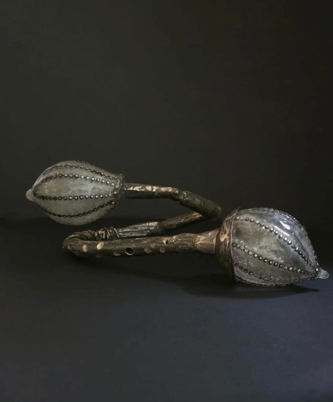 Tajana Vanovac Sesar's Of Silence occupies a fascinating spacebetweenjewelleryandsculpture,betweenthefunctional and the purely expressive. Two silver bracelets have been transformed into something altogether stranger and more beautiful — their forms swelling into seed-pod shapes, traced with rows of tiny dots, mounted on rough, branch-like handles that feel ancient and organic. They look like ritual objects, or instrumentsfromanotherworld.Sesarworkswithextraordinary delicacy and a wonderful sense of mystery, and these pieces reward the kind of slow, close looking that most objects never askfor.