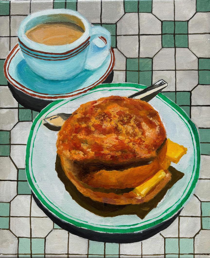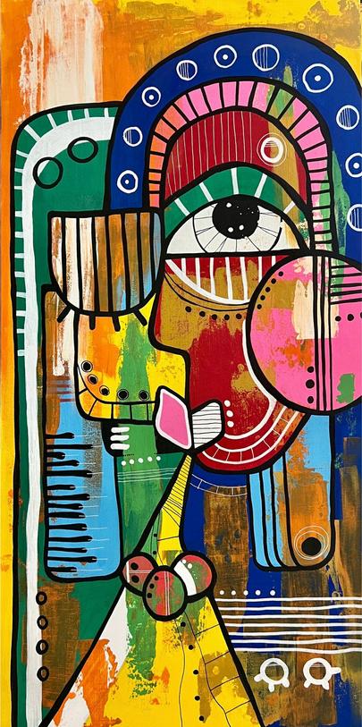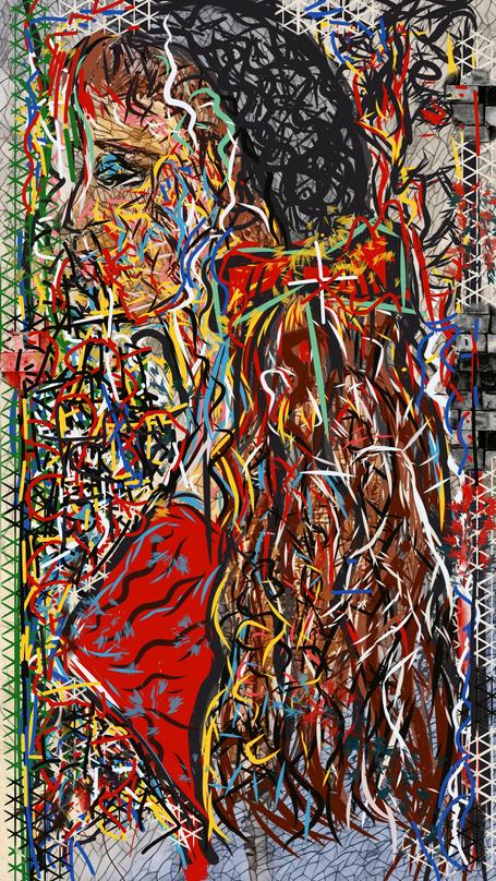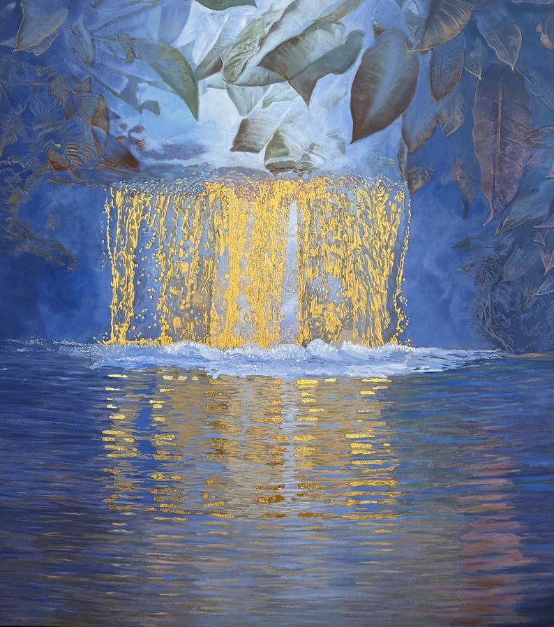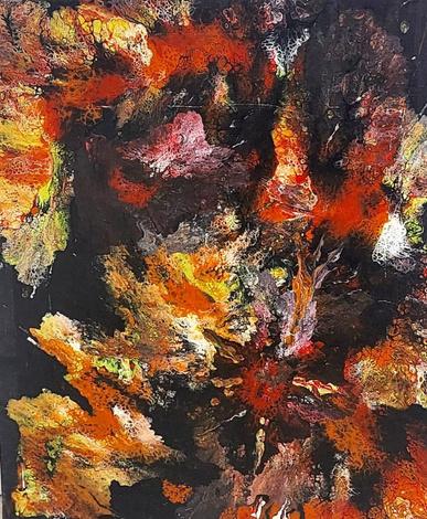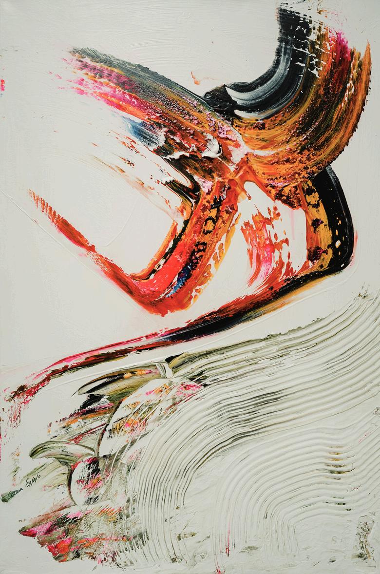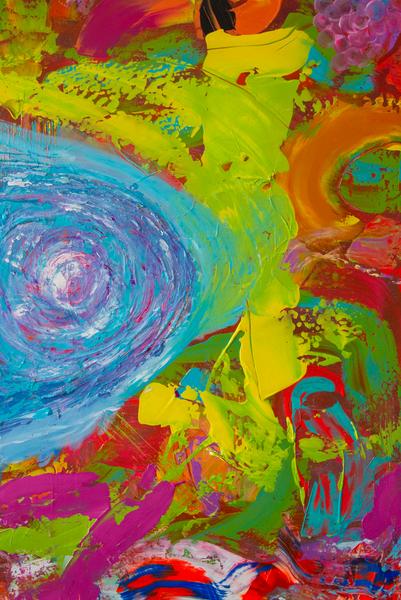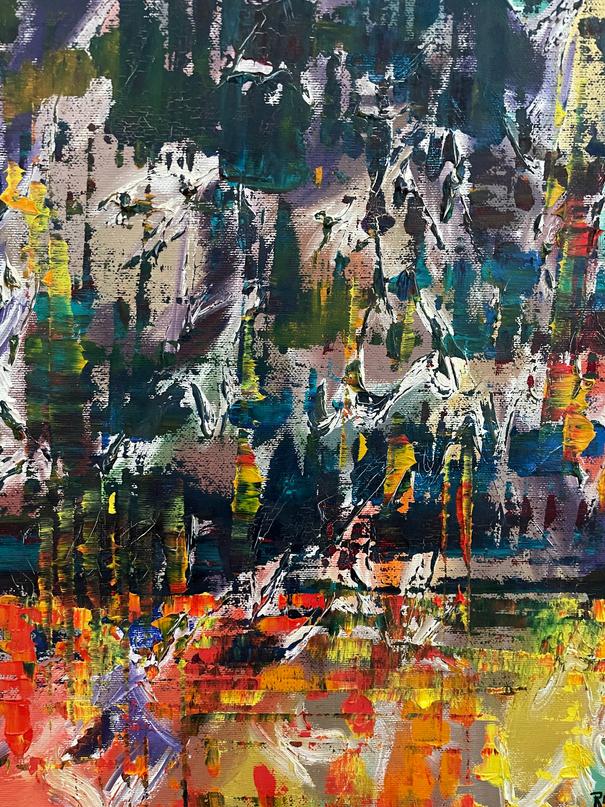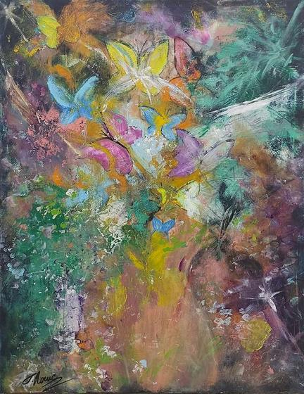 Watercolor, acrylic, dry pastel and digital interactions on canvas