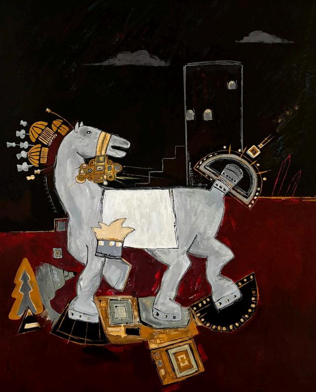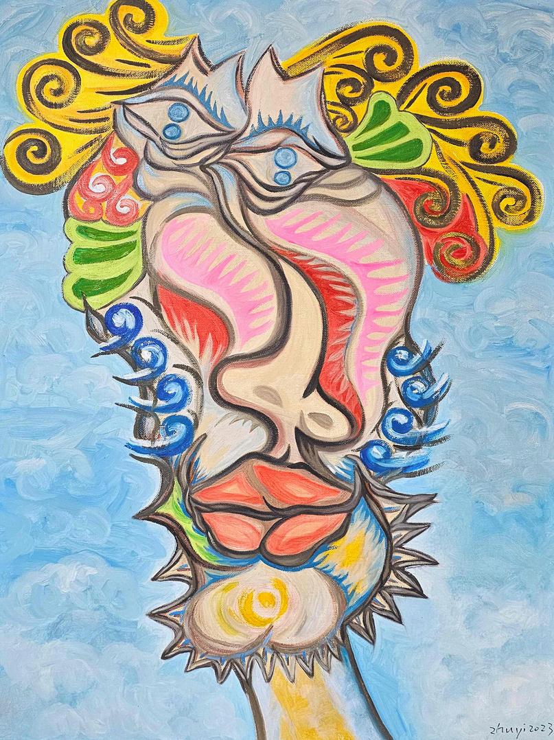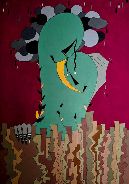 Watercolor, acrylic, dry pastel and digital finalization on canvas