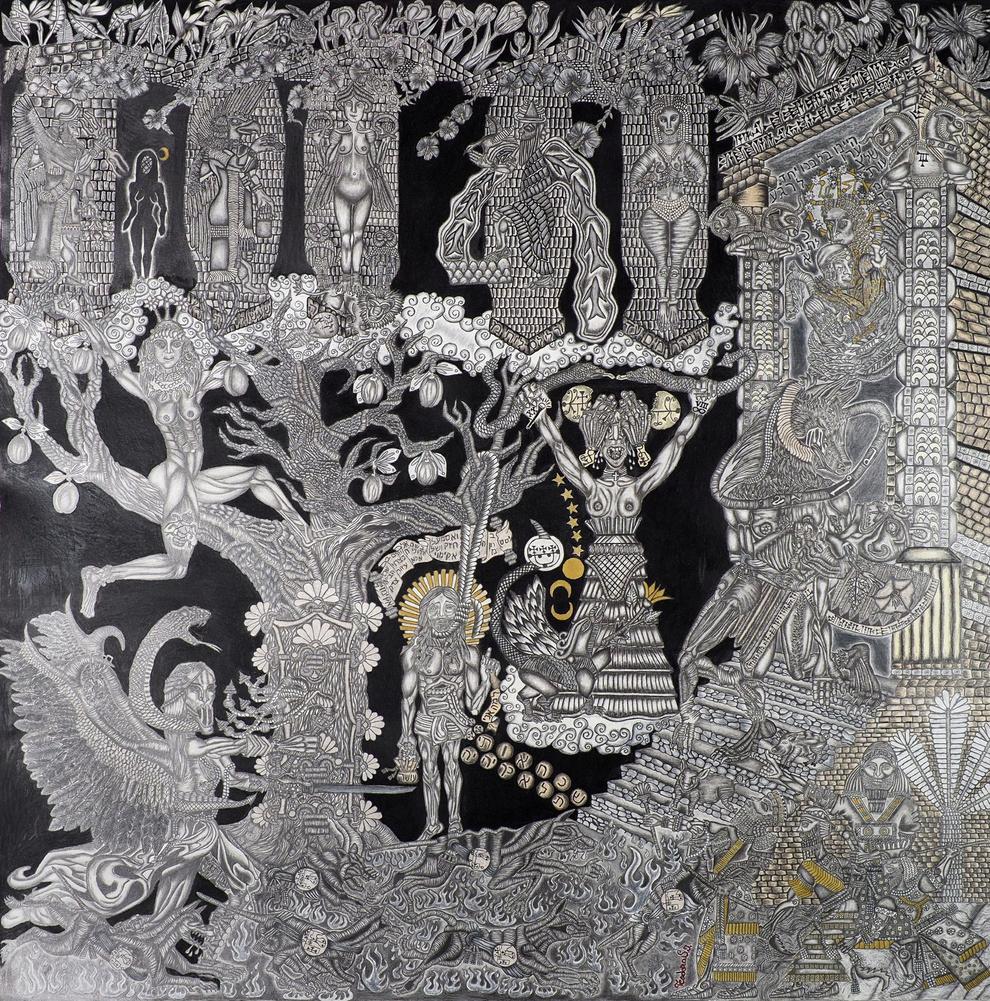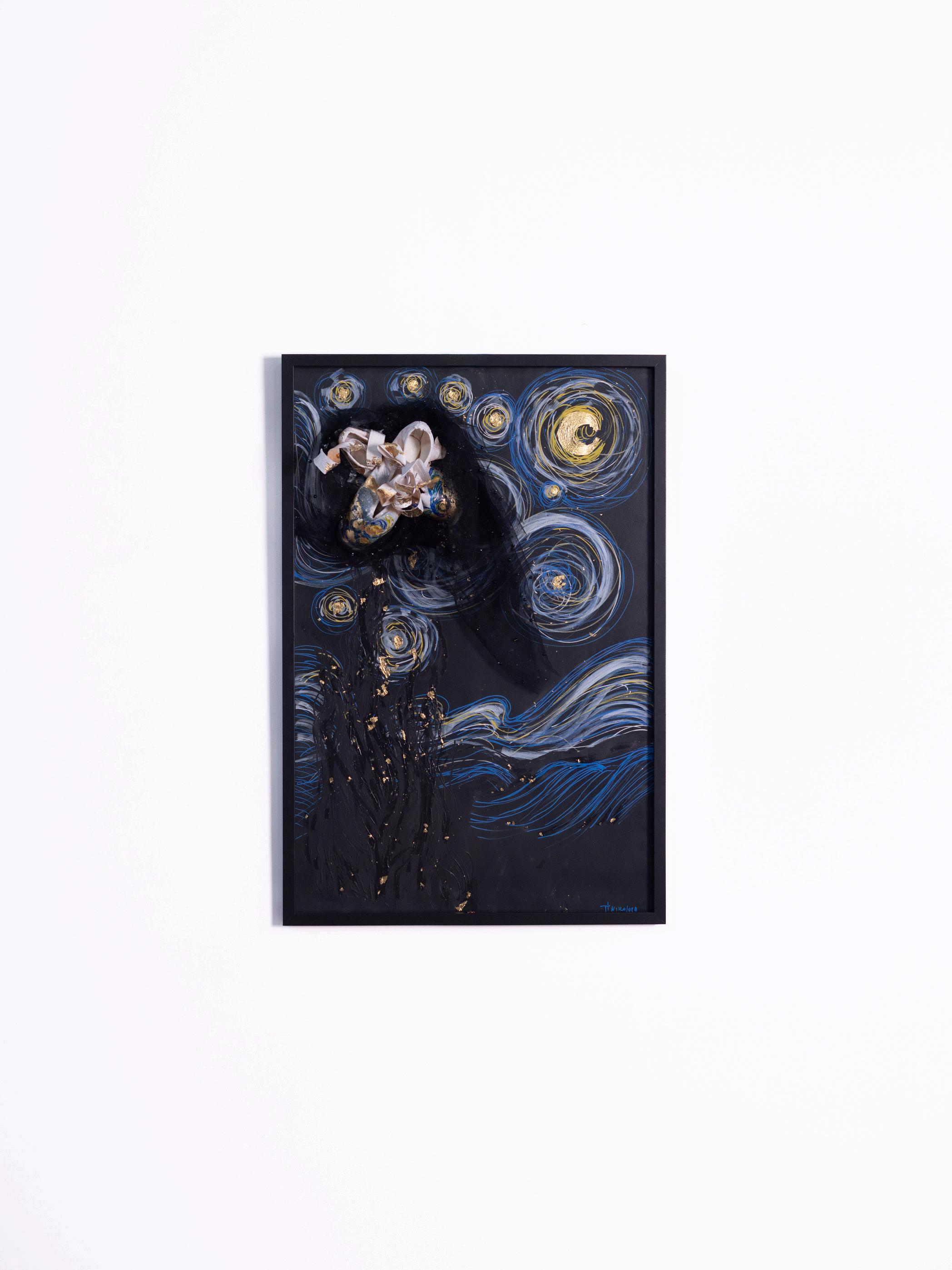I n f i n i t y i n t h e D a r k / 9 0 x 6 0 c m / A c r y l i c p a i n t, a c r y l i c m a r k e r s, g i l d i n g e, p o x y r e s i n, t e x t i l e s, m a r k e r s, l a c e