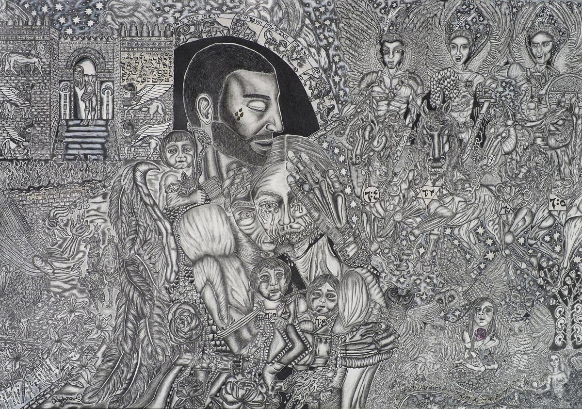 In Farmers of Sudan, Karel Vereycken constructs a powerful visual metaphor where human presence, animal forms, and landscape converge into a layered narrative of memory, labor, and identity. Through his masterful use of line and texture, the composition oscillates between figuration and abstraction, inviting the viewer into a space where meaning is discovered rather than imposed.