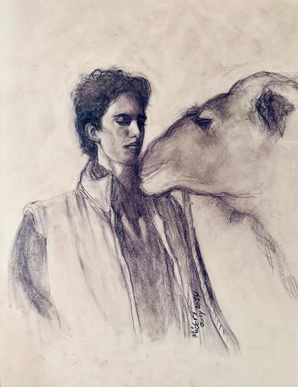Grey charcoal and pastel pencils on paper 40X30 cm