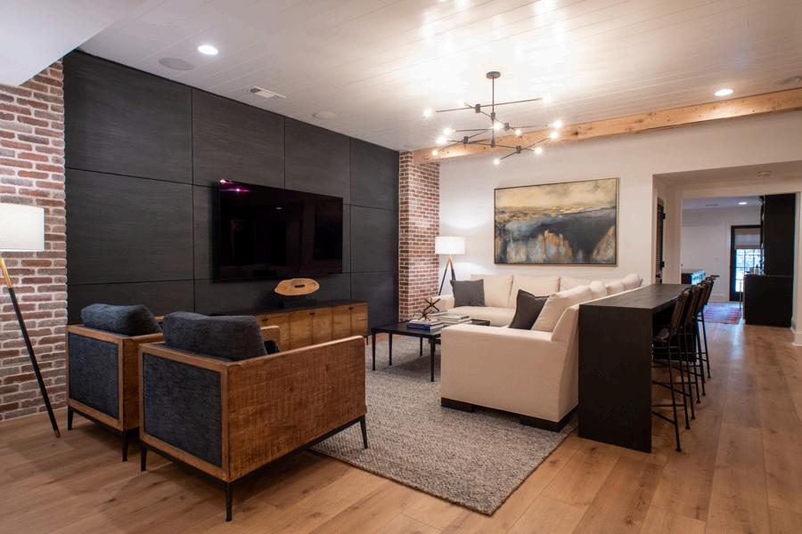 Furnishingselectionsforthemainentertainmentarea, dedicatedgamingzone,custombar,andafull bathroom-eachdesignedtoseamlesslyintegratewith theoverallvisionofthehome