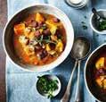 3. Pour in the stock and stir in the sweet potatoes, passata and beans. Bring to the boil over a high heat then cover, reduce the heat to low and simmer for 15 minutes or until the sweet potatoes are tender.