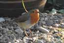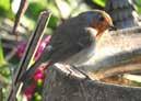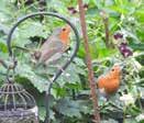 follow the gardener around the plot. Making a pursing noise with your lips whilst putting food out helps train the Robin to know what you are doing. Association of the sound with food availability will soon be learned, and furthermore this understanding and expectation can be passed down to the next generation during the summer months. Such behaviour develops from Robins following the gardener at work in the garden when they are watching for insects and worms being disturbed. This probably evolved from the birds simply following large herbivores blundering through the ancient forest!